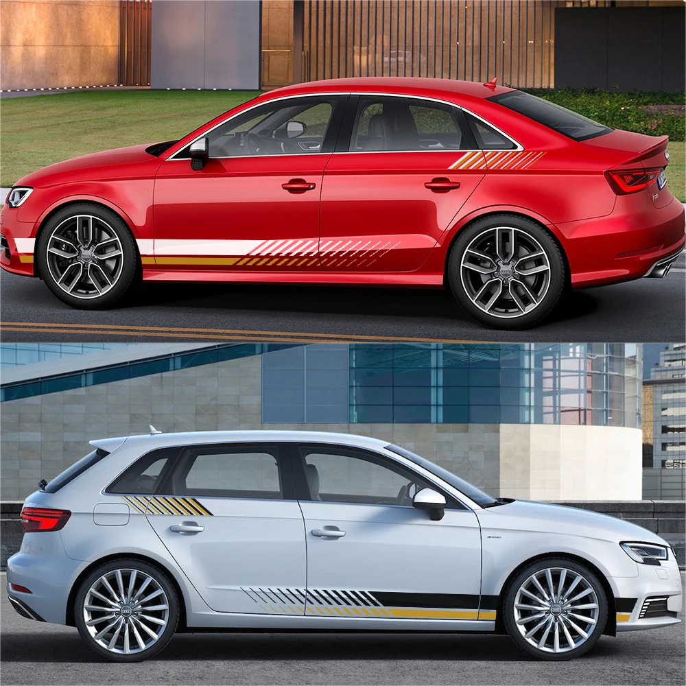 Автомобильные наклейки для Audi A3 8p 8v A4 B8 B6 B7 B9 B5 A5 A6 боковая полоса декоративная виниловая пленка Авто DIY наклейки автомобильные аксессуары для настройки