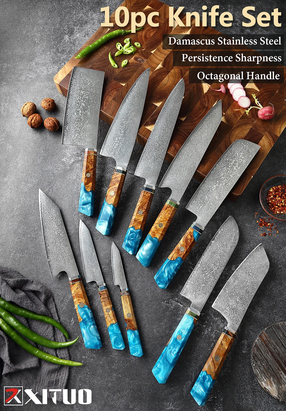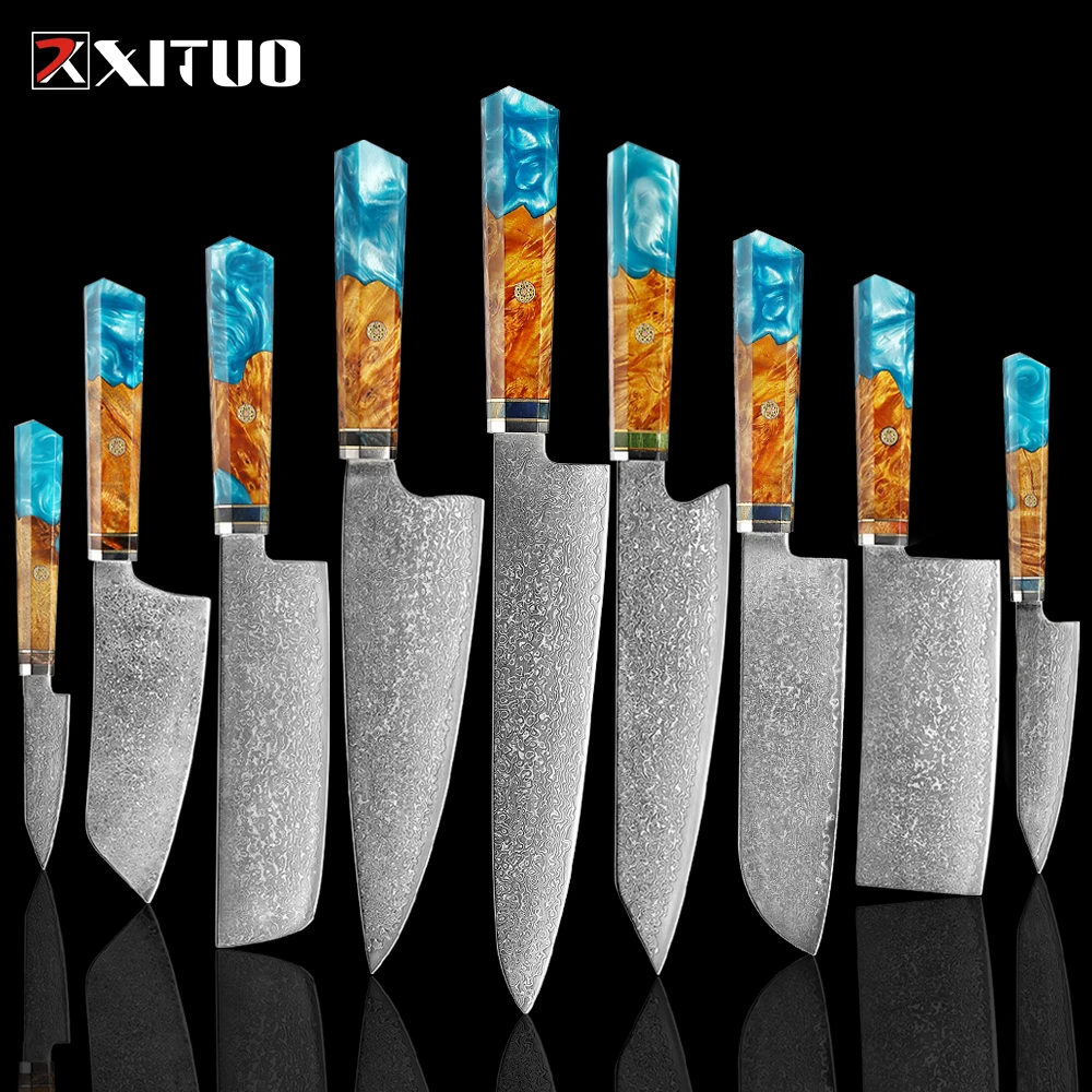 Нож кухонный из дамасской стали, VG10, XITUO набор ножей из дамасской стали