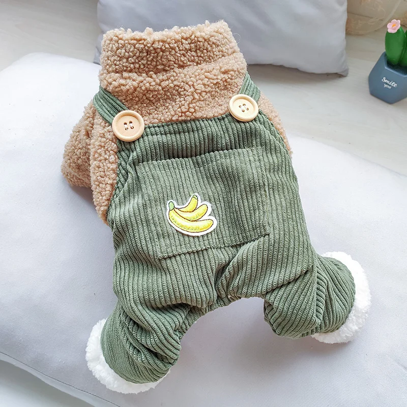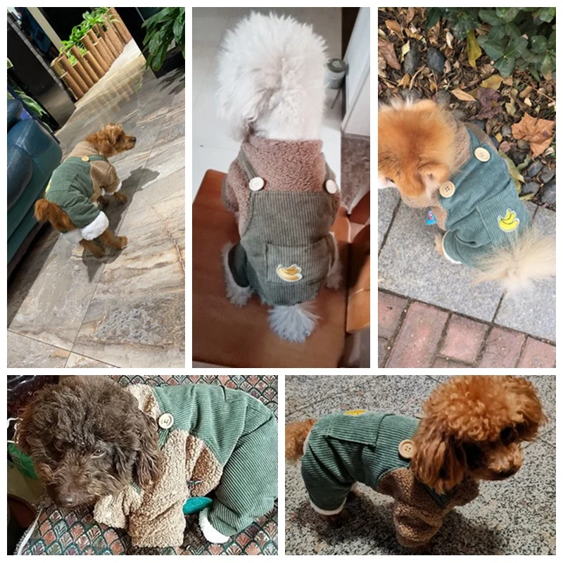 Зеленые штаны с бананами комбинезон для животных с пальто для щенков маленькие собаки осенне-зимние Пуховые комбинезоны толстые теплые дропшиппинг товары