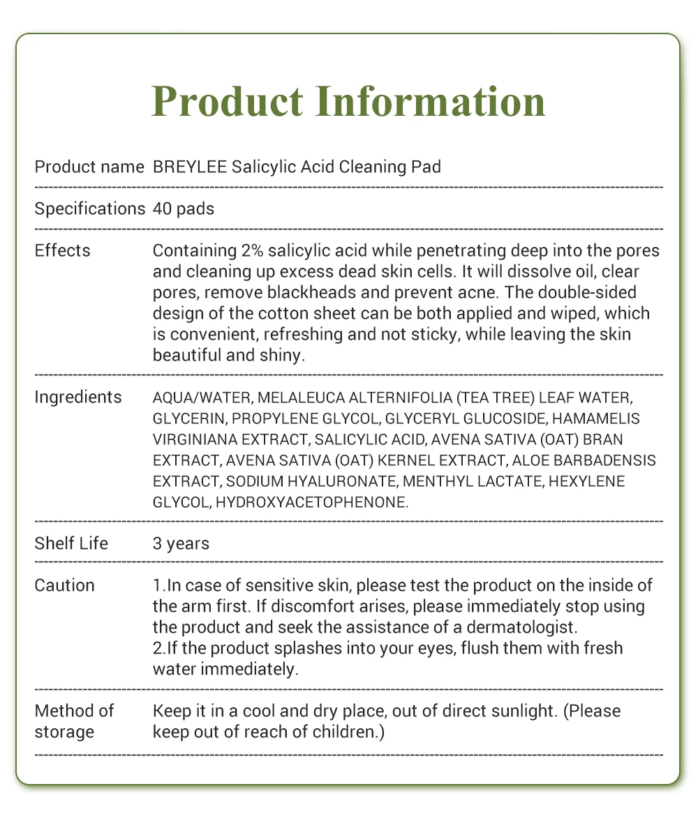 Breylee чайное дерево салициловая кислота хлопковые таблеткиКисть для удаления акне и гладкой кожи