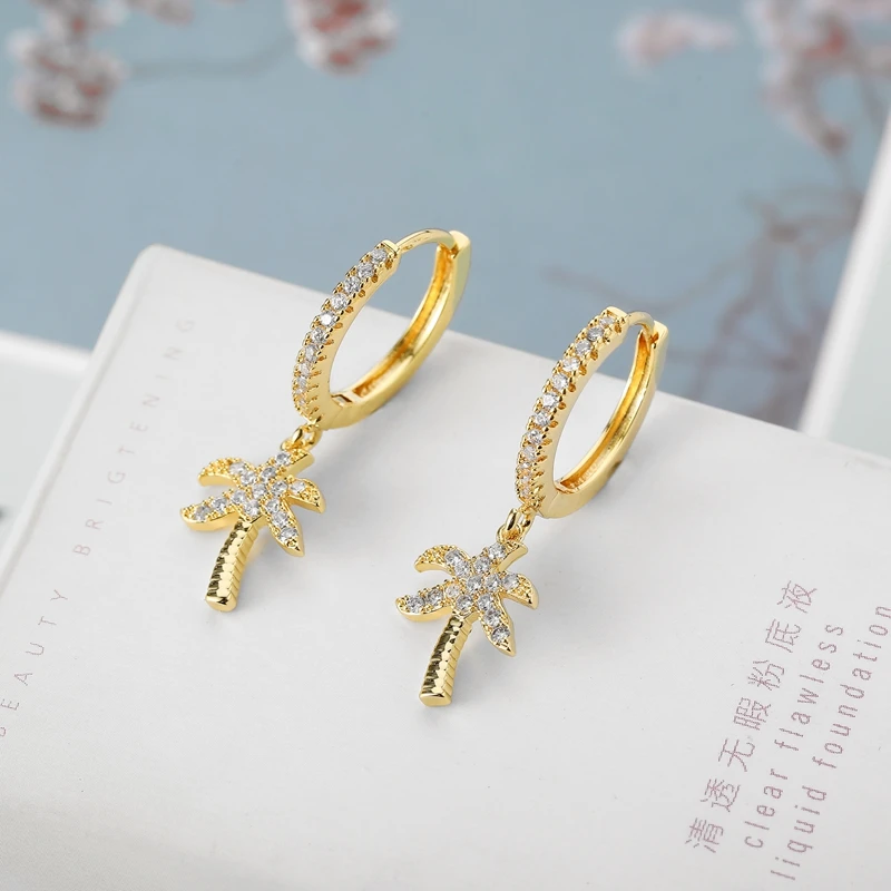 Модные золотые серьги-кольца в стиле хип-хоп с пальмами, геометриче...