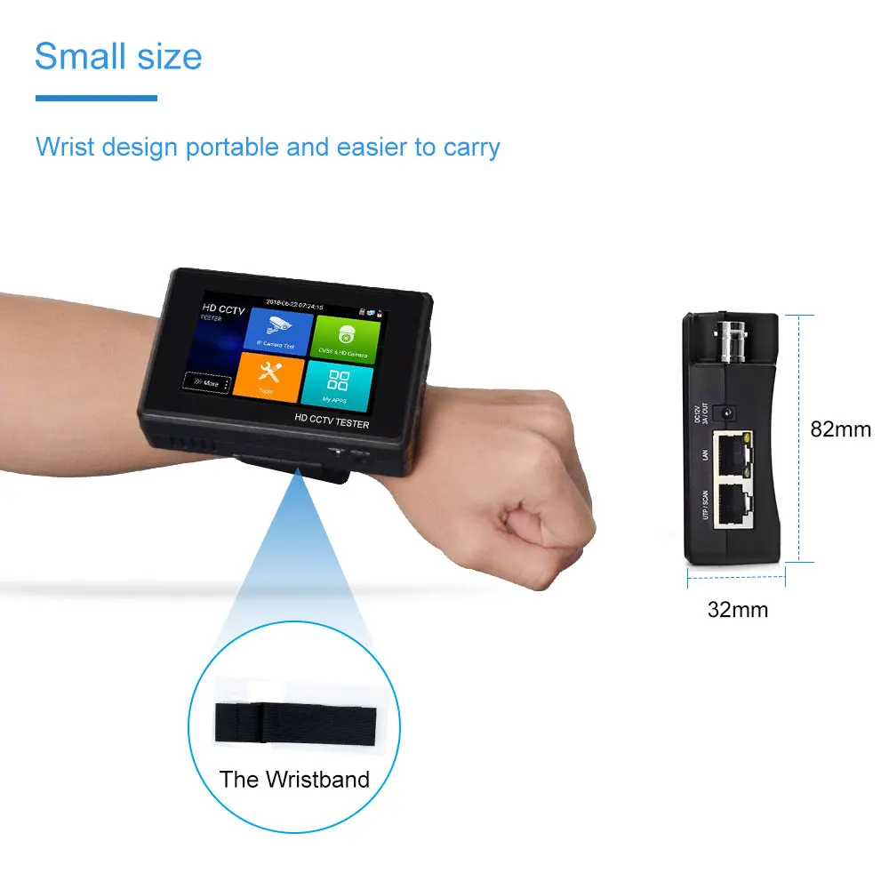 5-дюймовый IPS сенсорный экран ip-камера тестер предназначен для обслуживания и установки IP аналоговый видеорегистратор, HD коаксиальный камеры, а также другое оборудование для безопасности. Разрешение 1920*1080 позволяет ему отображать сетевые HD камеры и аналоговые камеры в высоком разрешении. Устройство поддерживает множество ONVIF PTZ и аналогового PTZ управления, и функции тестирования кабеля. Для завершения работы установщикам системы видеонаблюдения часто необходимо использовать различные инструменты тестирования. Если взять все в одном тестере камеры, делая условия работы более безопасными и увеличивая производительность.