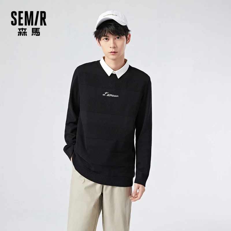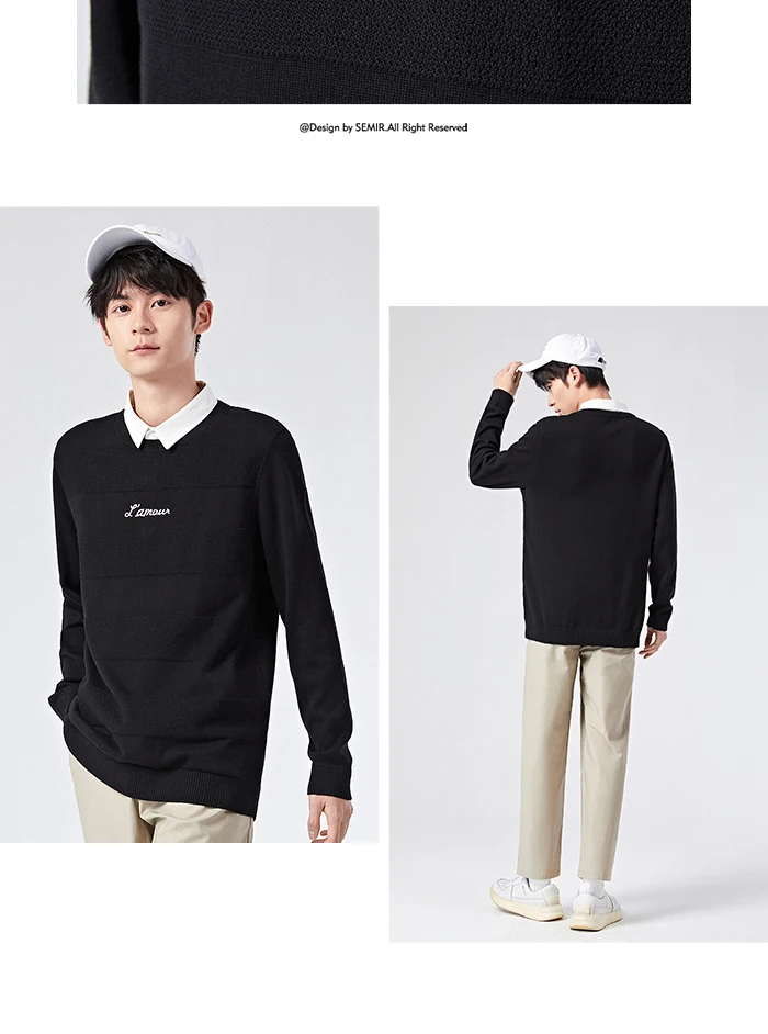 Свитер SEMIR мужской с имитацией двух частей, свитер с воротником-рубашкой внутри и снаружи, свитер, новинка 2021, мужские весенние топы