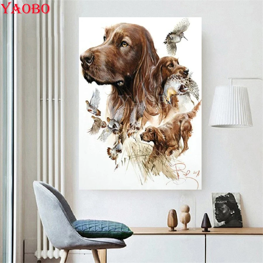Горячая Распродажа! Полностью Квадратный бриллиант, 5D картина с изображением собак и диких уток, алмазная вышивка, мозаика, стразы, круглый рисунок