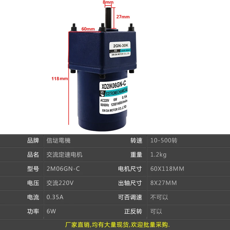 Редукторный двигатель переменного тока Cinda, 220 В, 6 Вт, однофазный двигатель, демпфирование, постоянная скорость, миниатюрный медленный двигатель и кронштейн индукционного двигателя