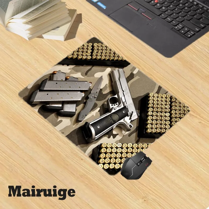 Коврик для мыши Mairuige с изображением современного пистолетного оружия, маленький компьютерный игровой коврик для мыши из натурального каучука, Настольный коврик с фиксирующим краем, игровой Настольный коврик