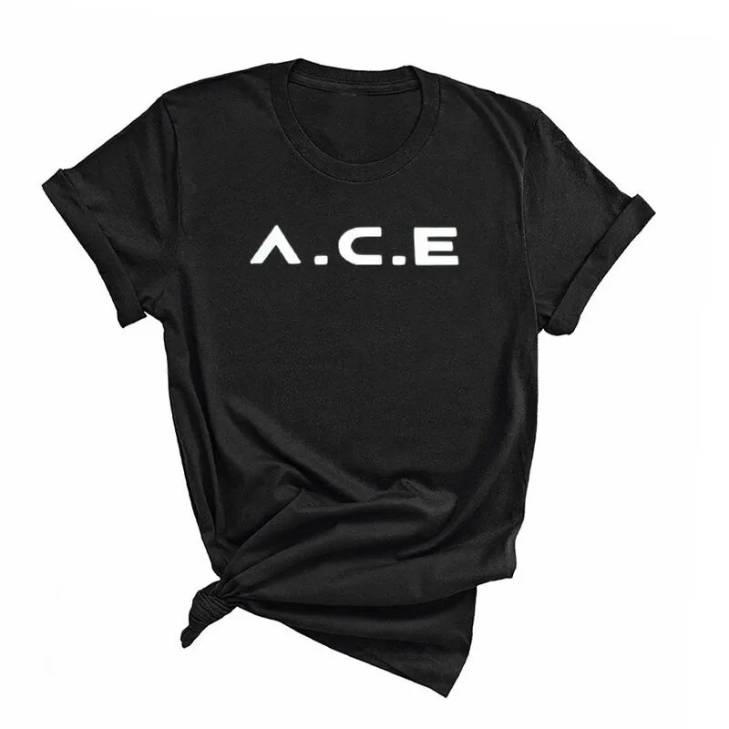 Женская футболка с принтом букв ACE K-pop A.C.E, повседневные Летние футболки с коротким рукавом и круглым вырезом, черная футболка для женщин