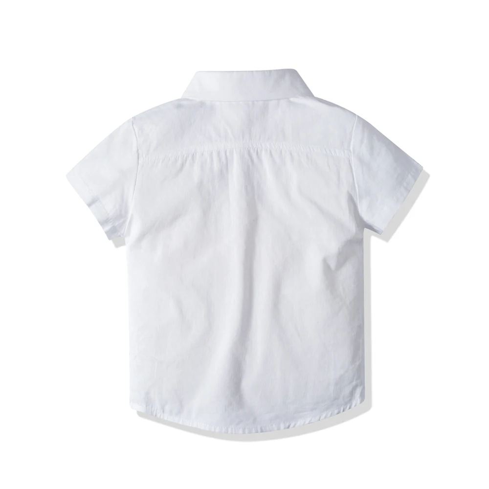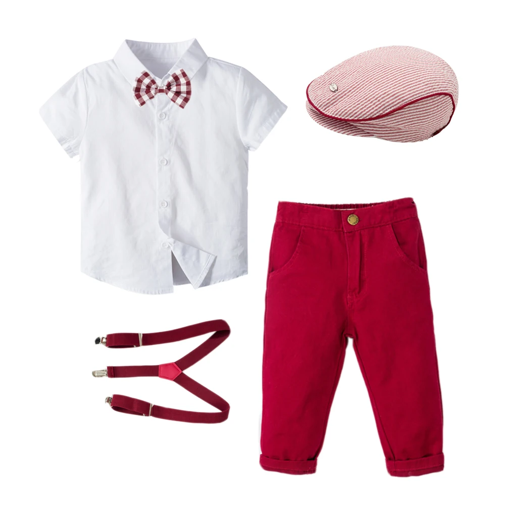 От 1 до 5 лет Одежда для мальчиков с коротким рукавом, повседневный комплект для малышей, белая рубашка, красные штаны, полосатая чашка, модная детская одежда, Базовый костюм