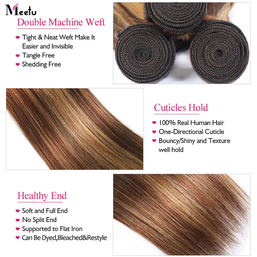 Meetu выделить пряди прямые волосы пряди Волосы Remy переплетения бразильские человеческие волосы пряди эффектом деграде (переход от темного к пианино Цвет пряди для наращивания волос