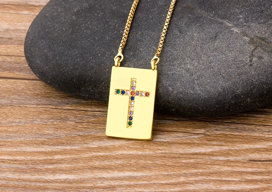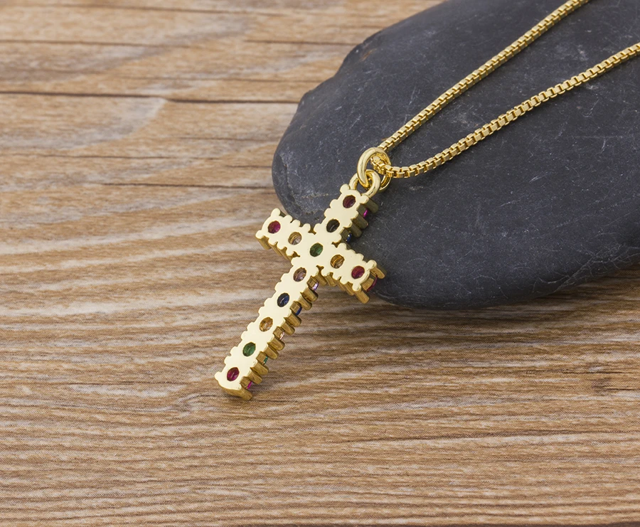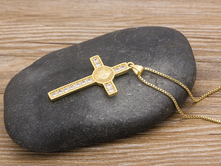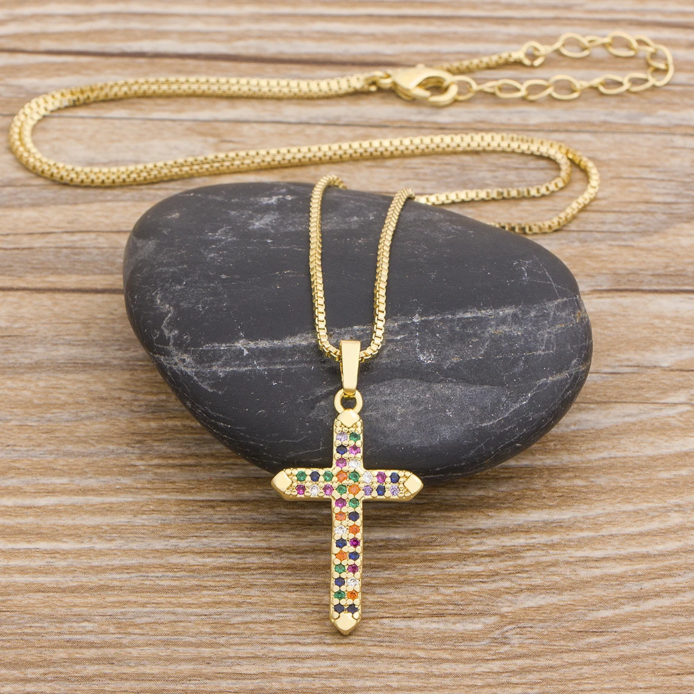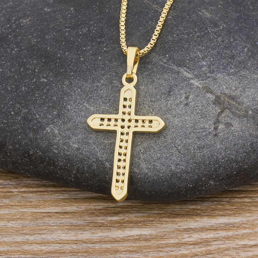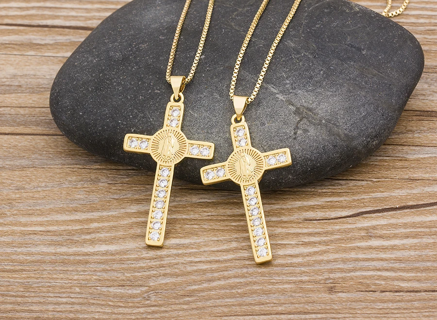 Одежда высшего качества золото Цвет христианской подвеска в виде религиозного Креста ожерелье для женщин Шарм кубического циркония ювелирные подарки на Рождество и день рождения