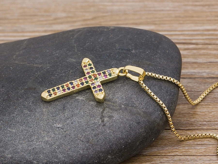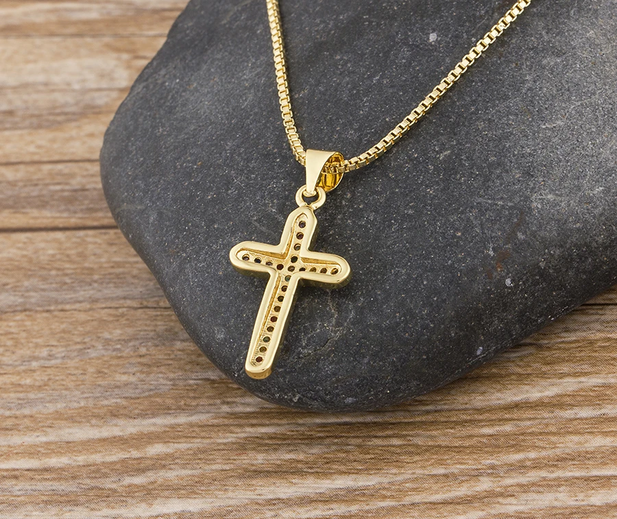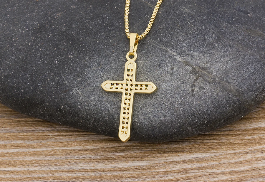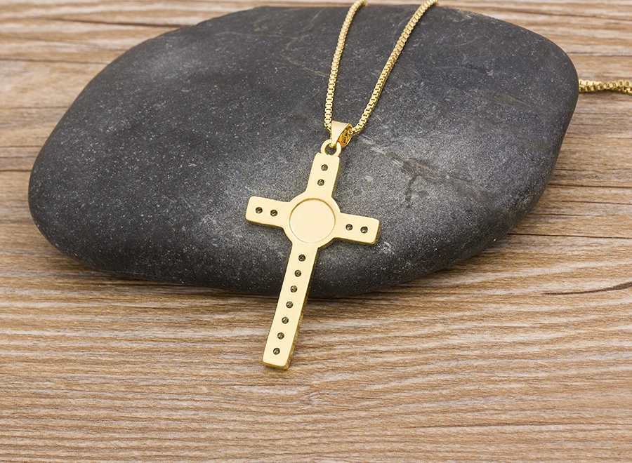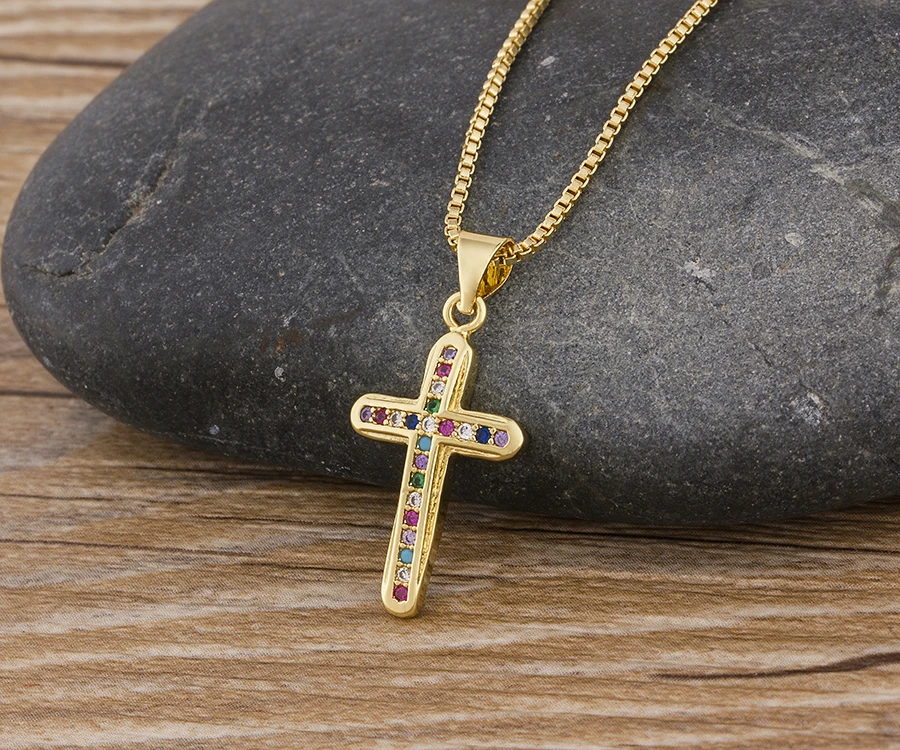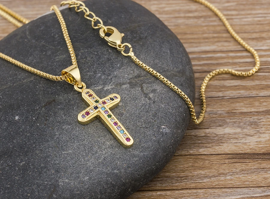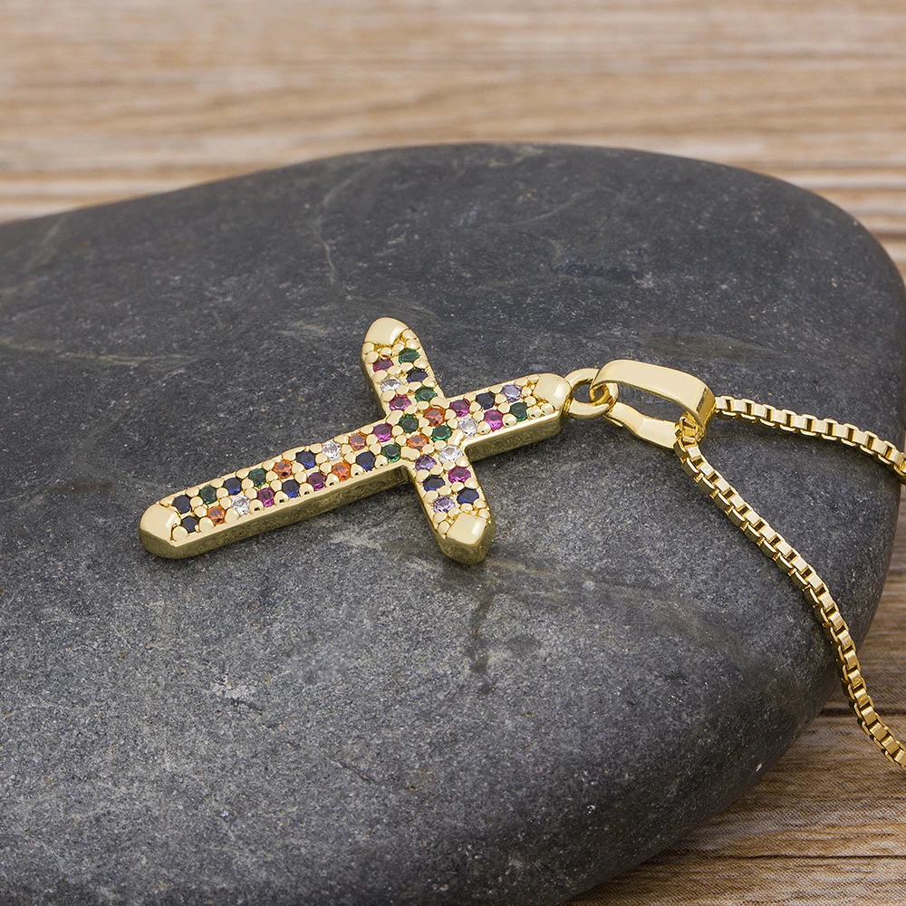 Одежда высшего качества золото Цвет христианской подвеска в виде религиозного Креста ожерелье для женщин Шарм кубического циркония ювелирные подарки на Рождество и день рождения