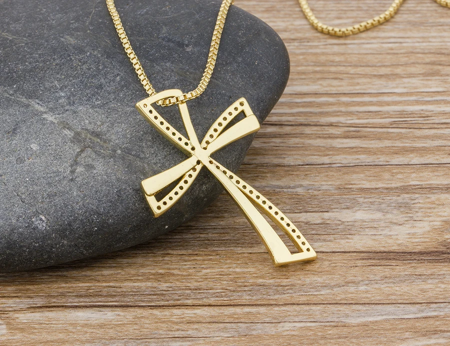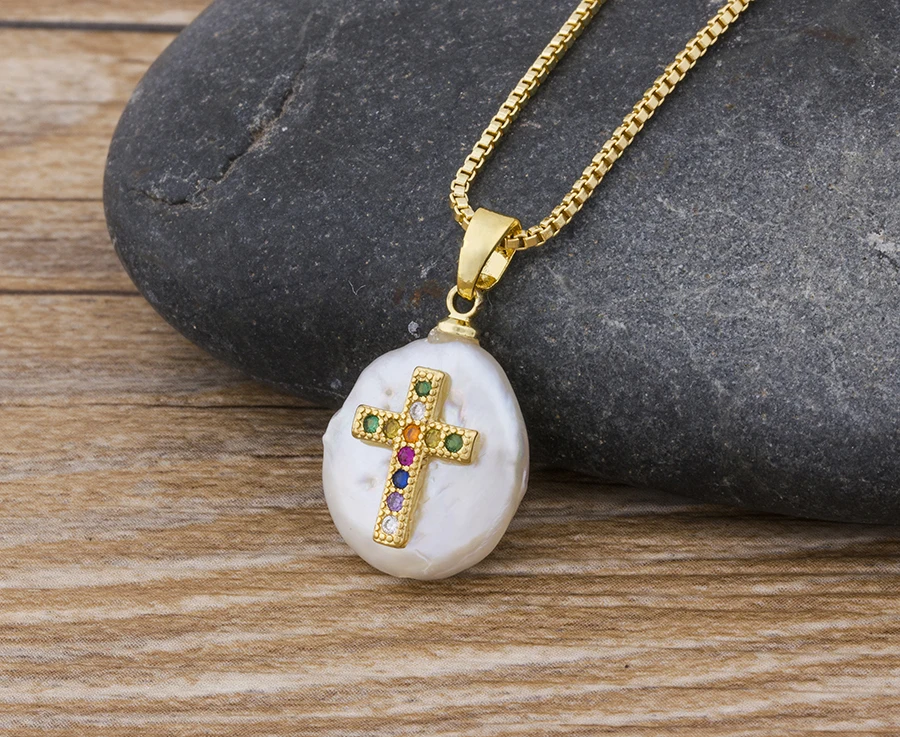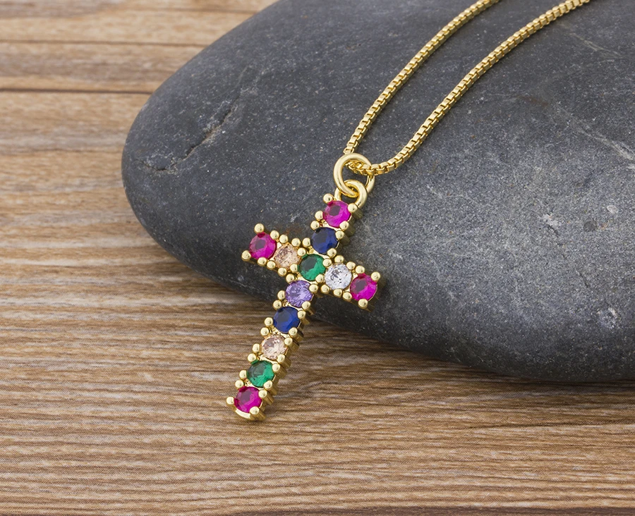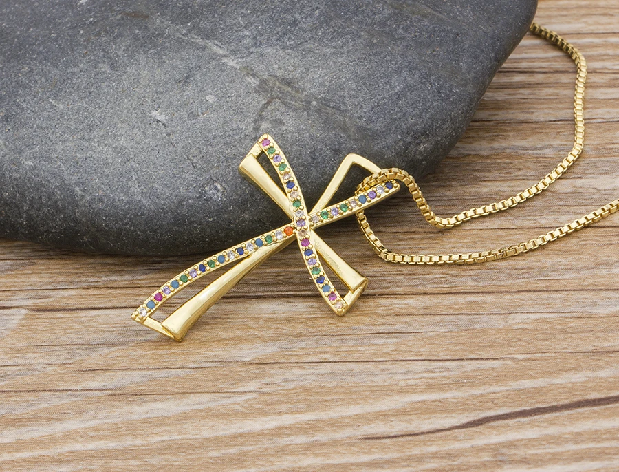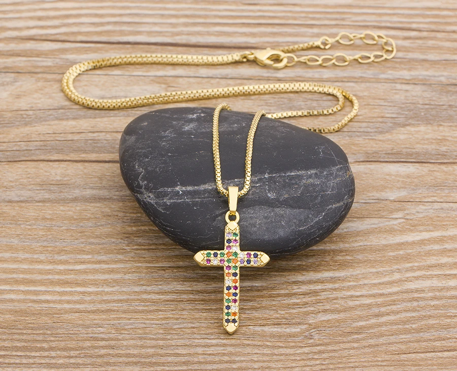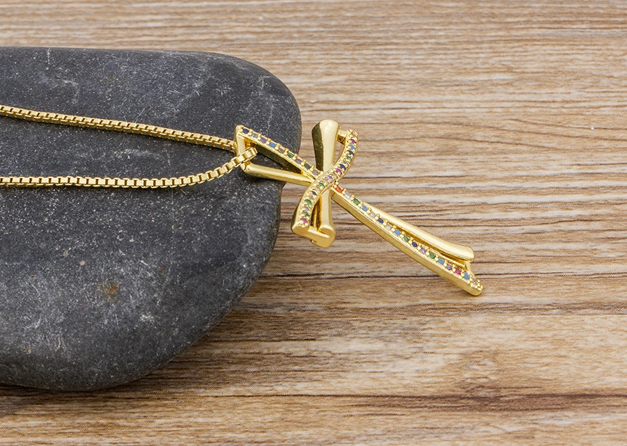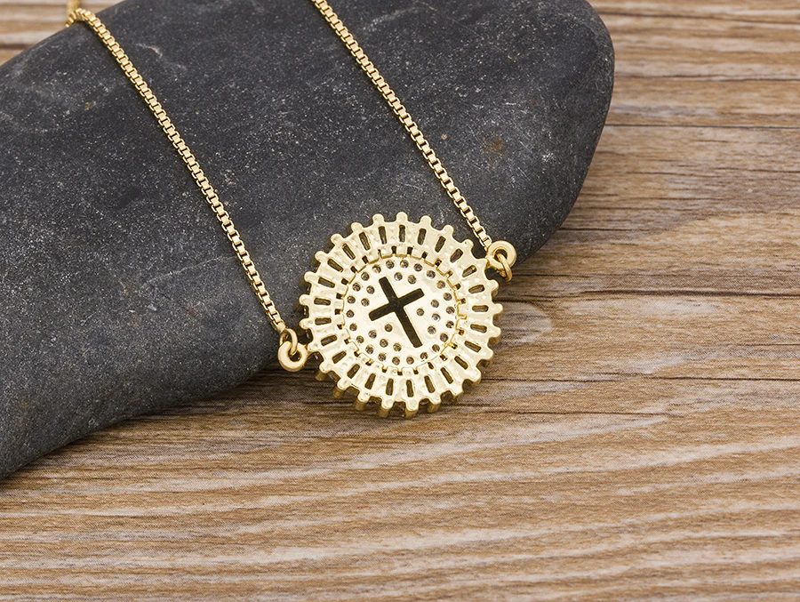 Одежда высшего качества золото Цвет христианской подвеска в виде религиозного Креста ожерелье для женщин Шарм кубического циркония ювелирные подарки на Рождество и день рождения