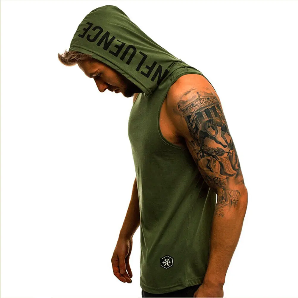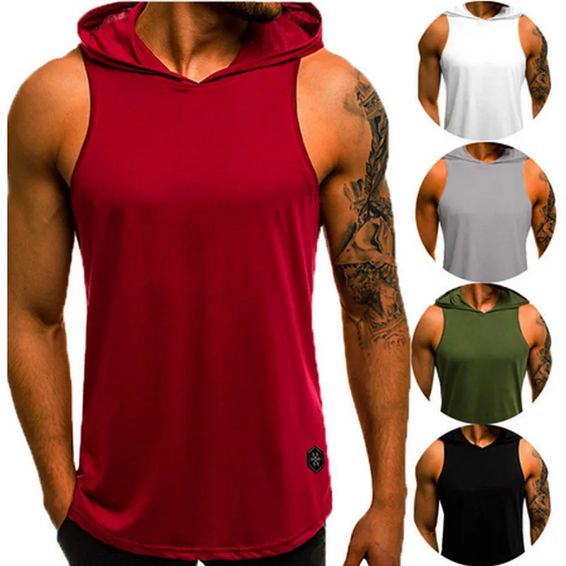 Майка мужская облегающая без рукавов, однотонная Облегающая майка с капюшоном, для спортивного зала, бодибилдинга, тренировок, лето