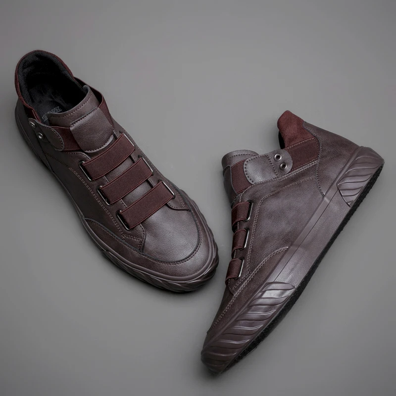 Мужские кожаные туфли, лоферы, высокие кроссовки, удобная обувь в британском стиле, Мокасины, корейский тренд