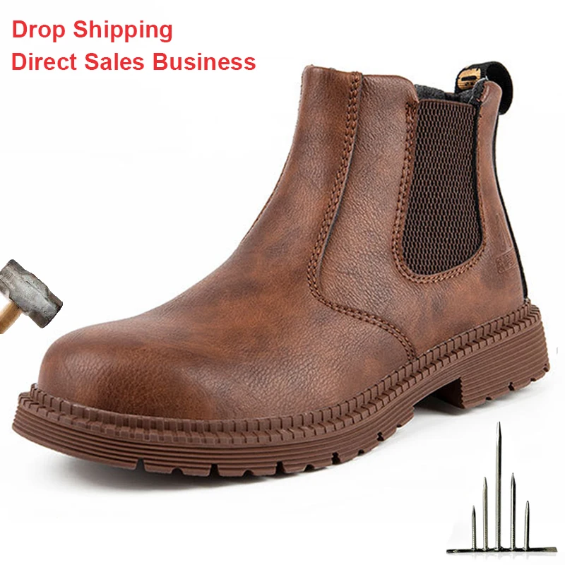 Рабочие защитные ботинки, мужские ботинки челси, сапоги со стальным...