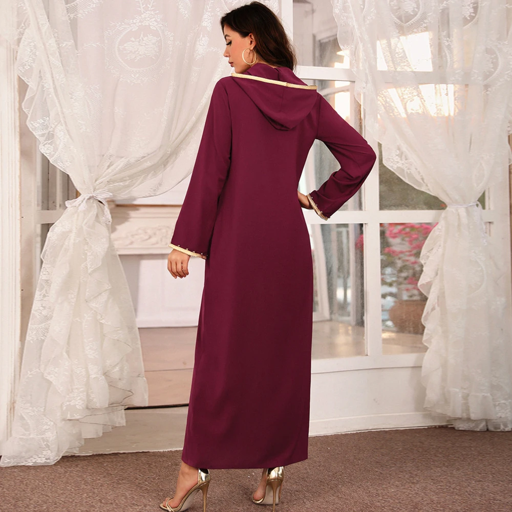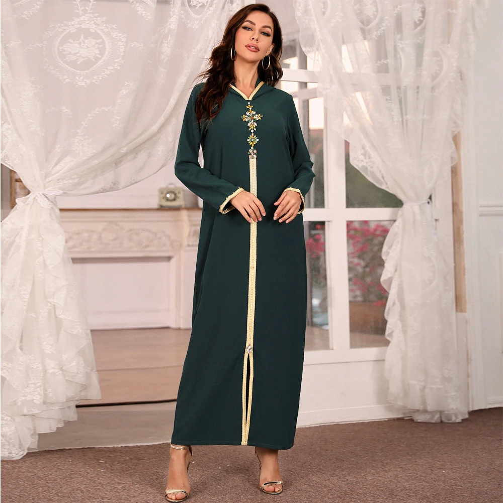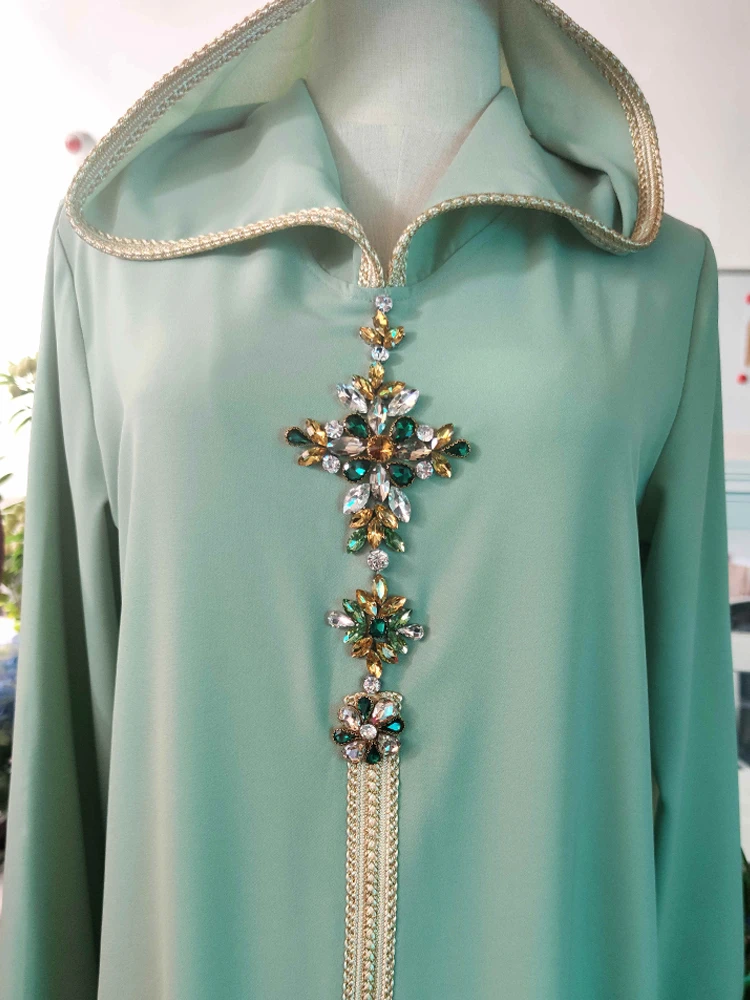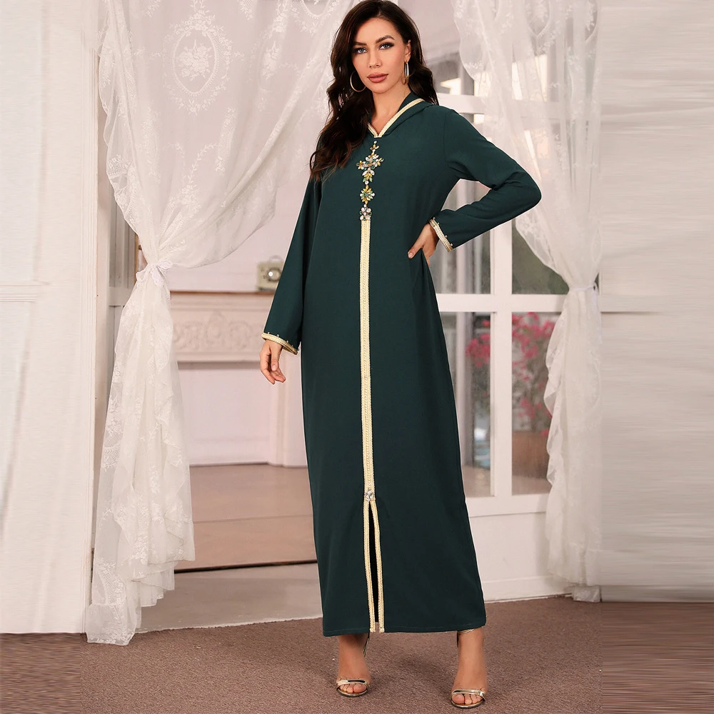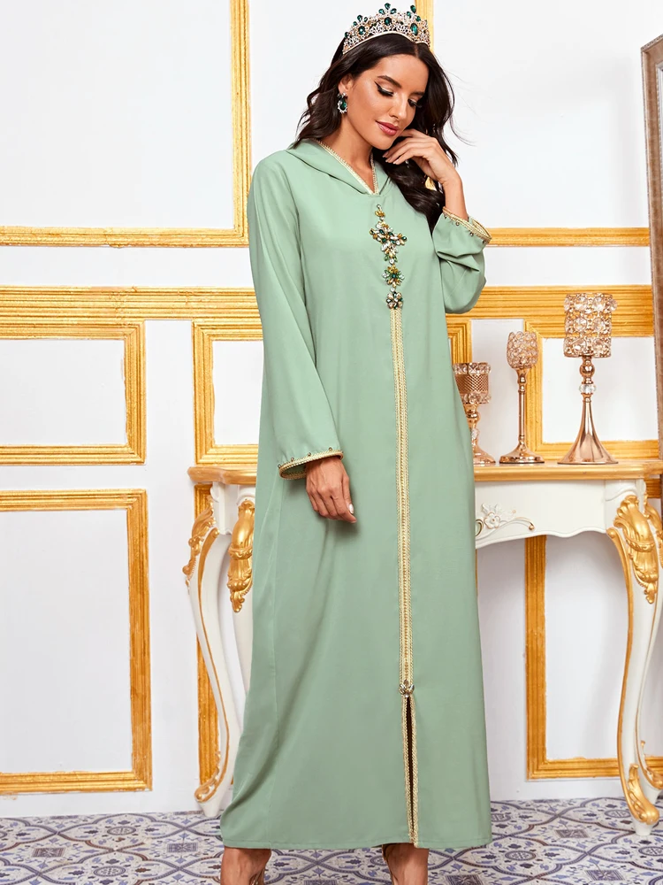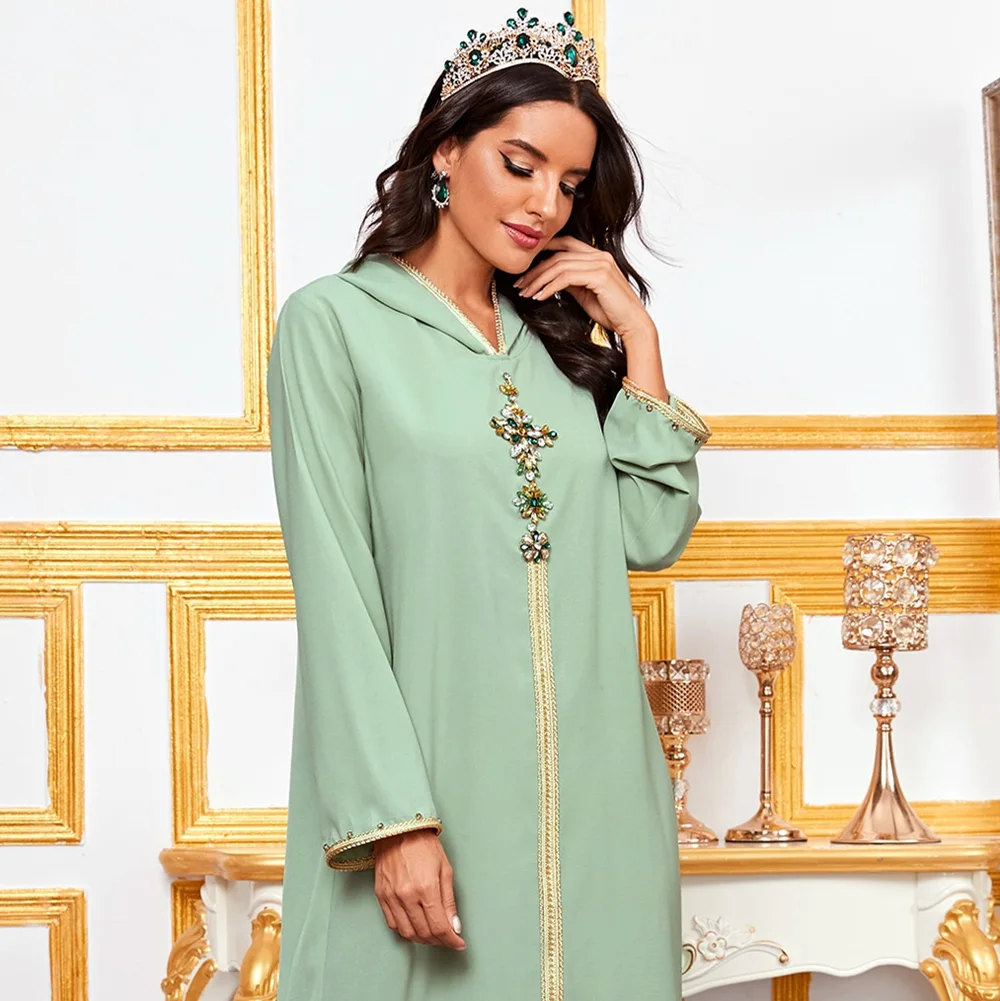 Женское длинное платье с капюшоном Jelleba, свободное платье с оплеткой и отделкой стразами в арабском стиле, Дубай, Катар, джалабия, абайя, мусульманская вечеринка, ИД