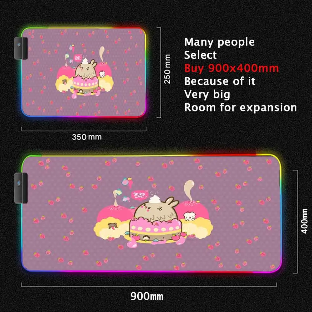 Большой розовый коврик для мыши, милые аксессуары для игр, игровой коврик для мыши для девочек Rgb с котом, коврик с подсветкой медведя, светодиодные коврики для ПК, аниме