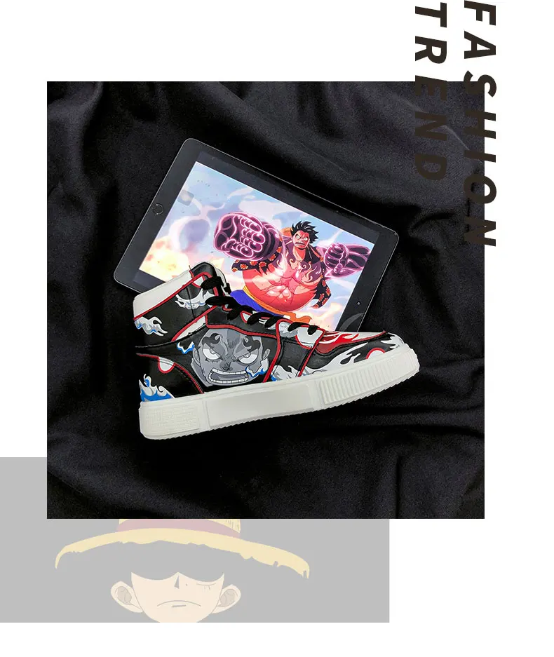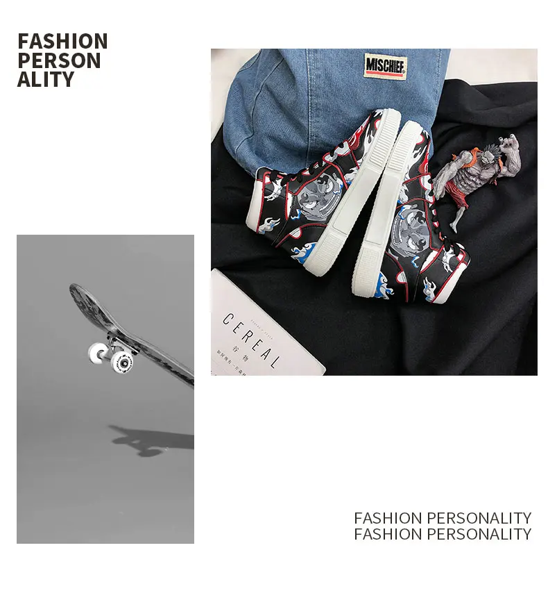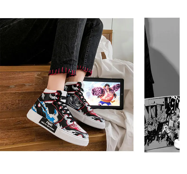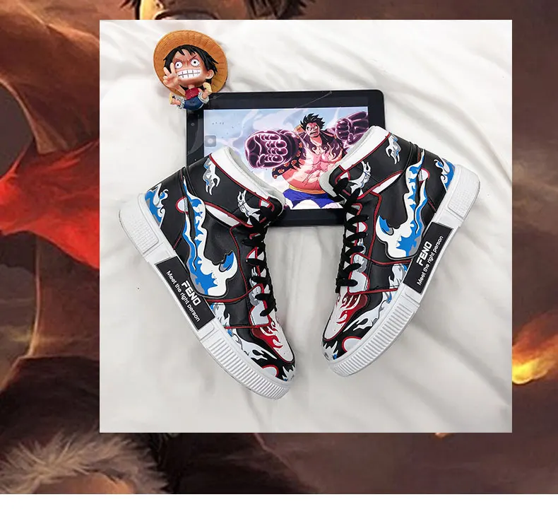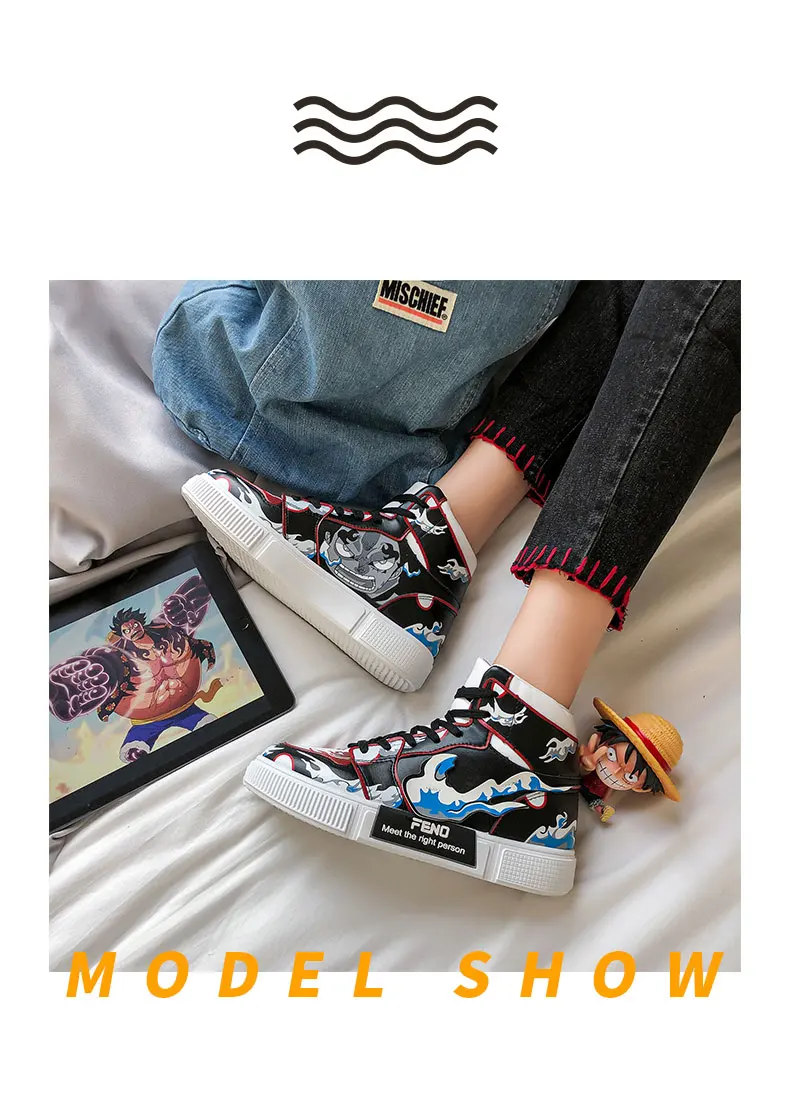 Кроссовки с вулканизированной подошвой для мужчин и женщин, мультяшный Луффи, плоская подошва, высокие, повседневная обувь в стиле аниме