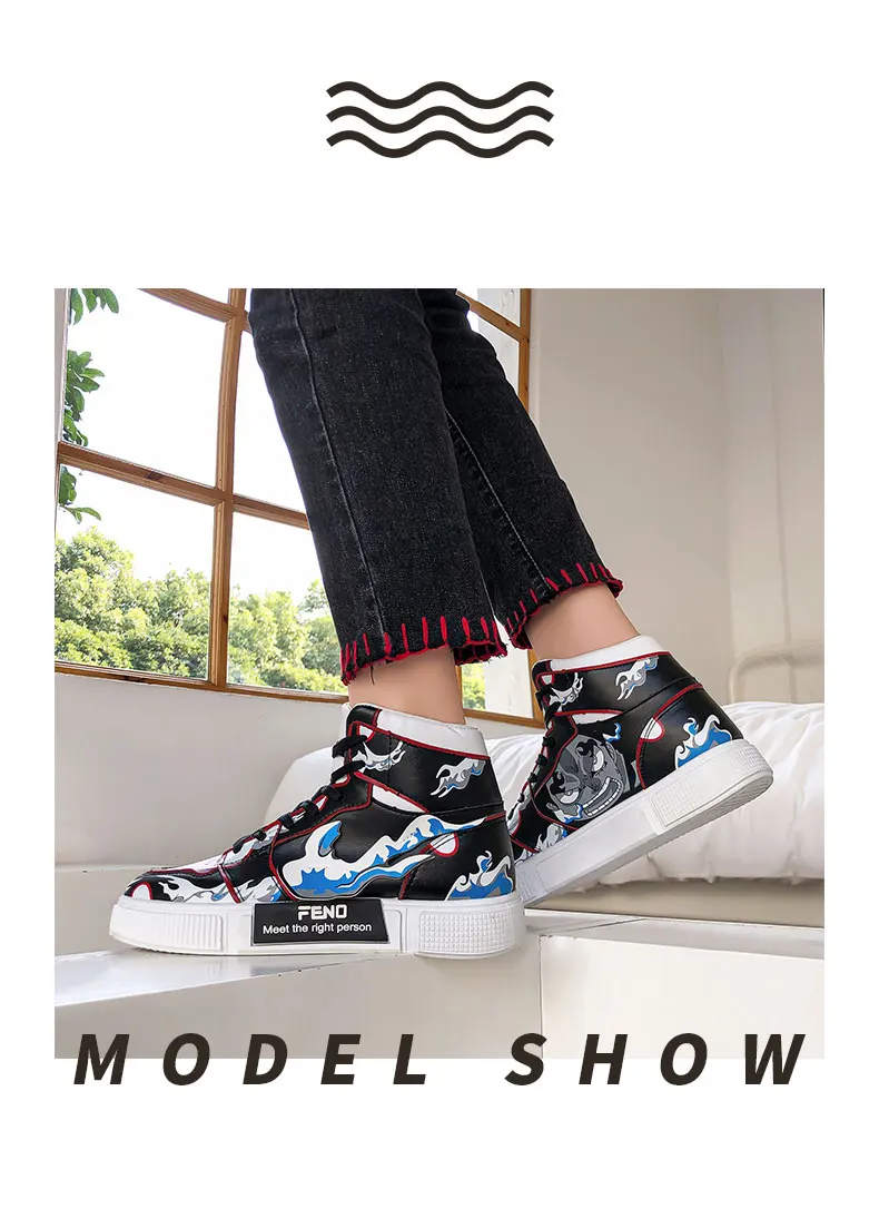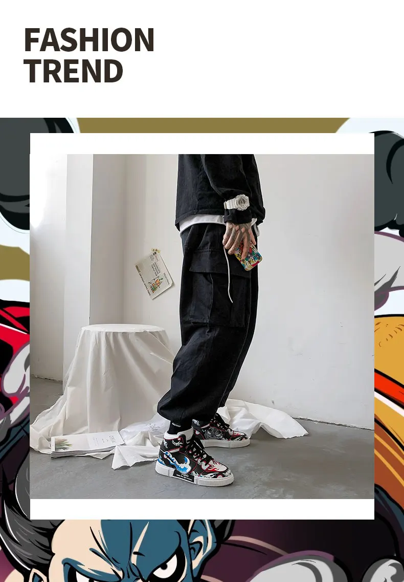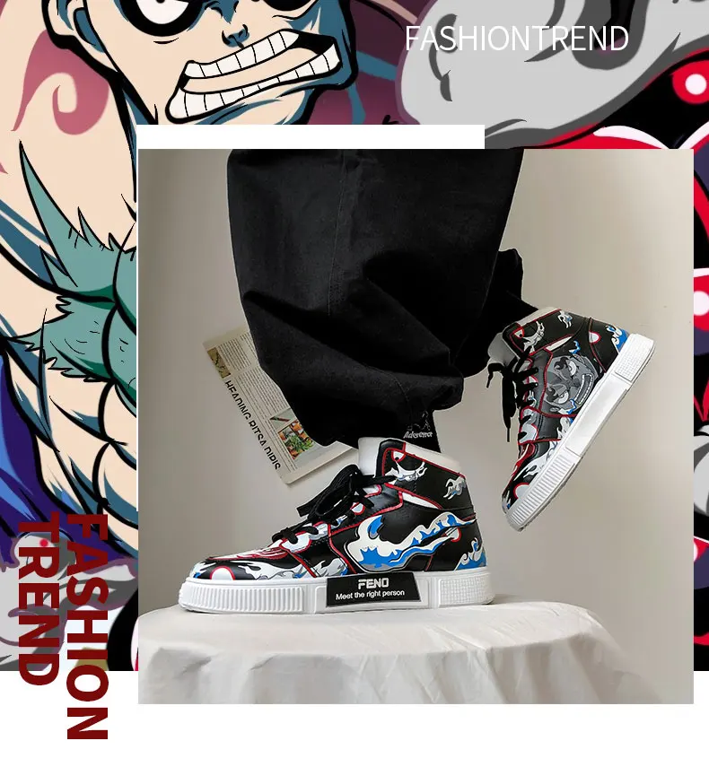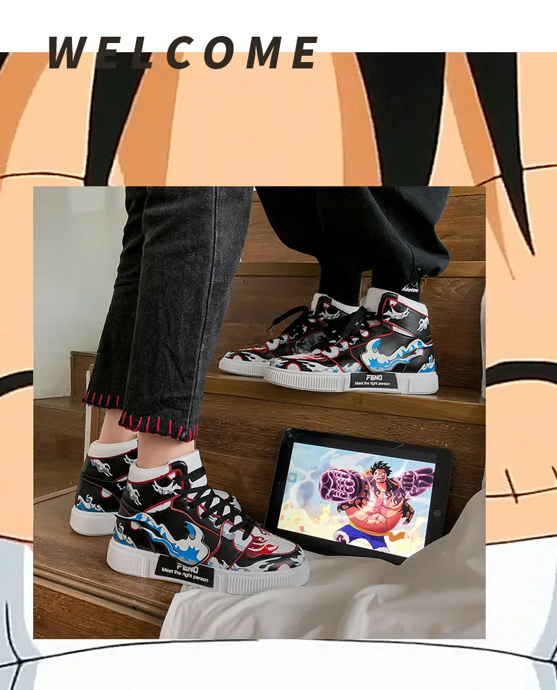 Кроссовки с вулканизированной подошвой для мужчин и женщин, мультяшный Луффи, плоская подошва, высокие, повседневная обувь в стиле аниме