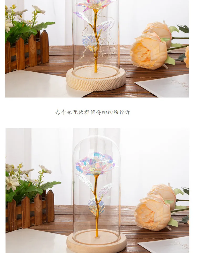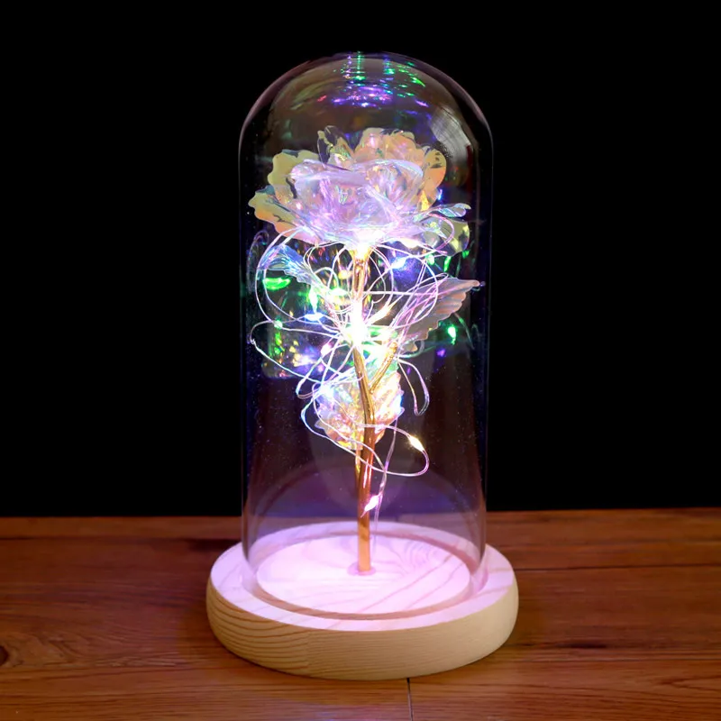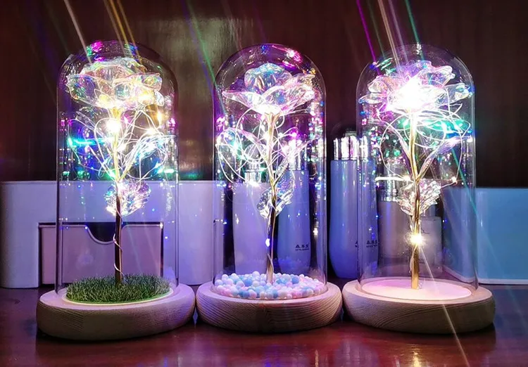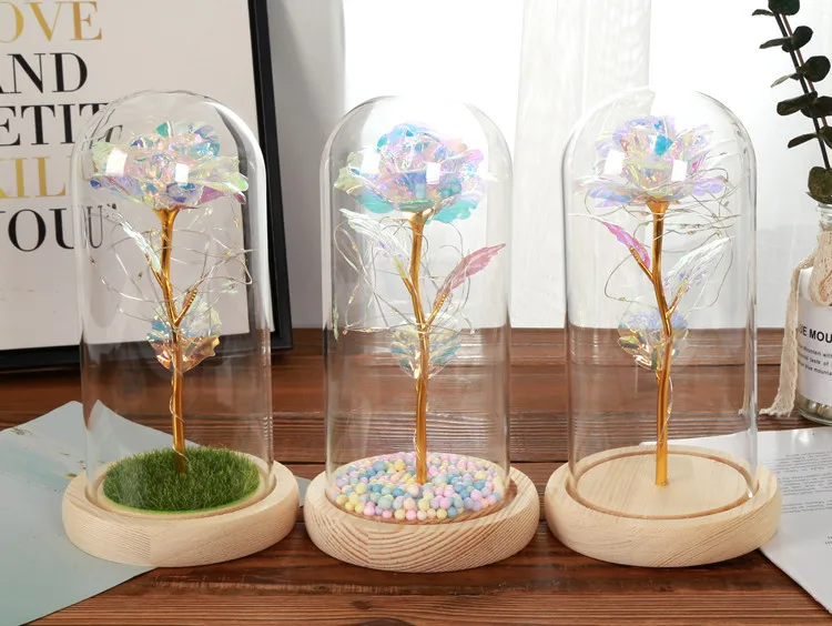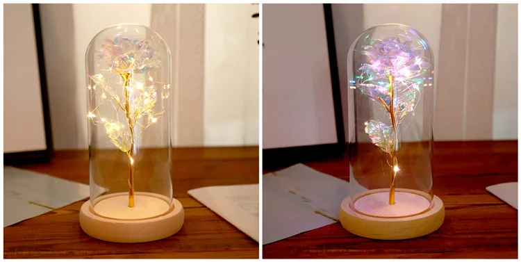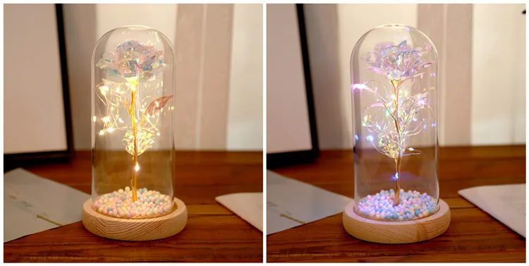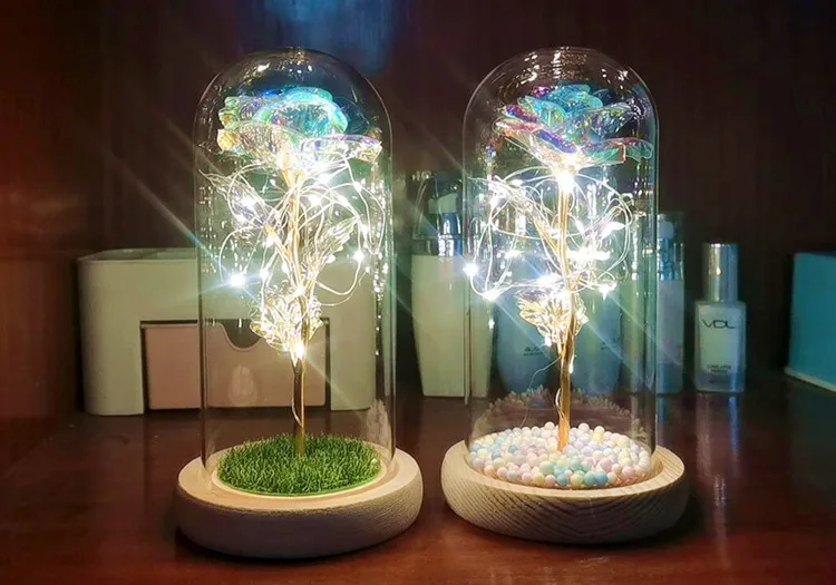 Светодиод Galaxy Rose мигающие фольгированные цветы в колбе стеклянный купол для Дня Святого Валентина матери подарок на день рождения свадебное украшение