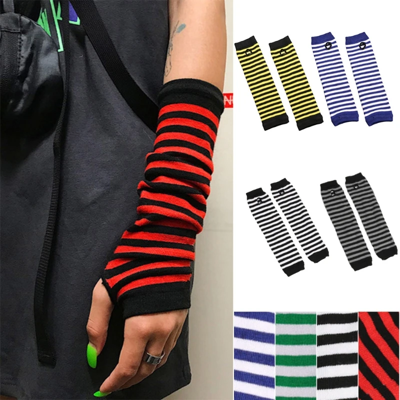 Модные женские полосатые локоть перчатки унисекс теплые вязаные дли...