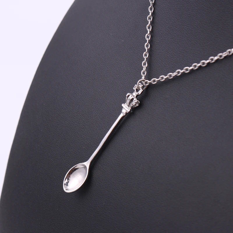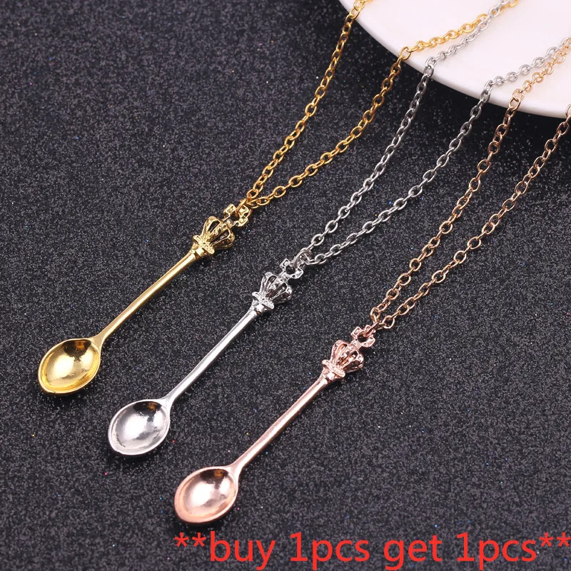 Комплект из 2 предметов, модный очароватеьлный с Маленькая чайная ложка Форма кулон ожерелье с украшением в виде короны для женщин 3 Цвет креативный мини длинная цепь, ювелирные изделия