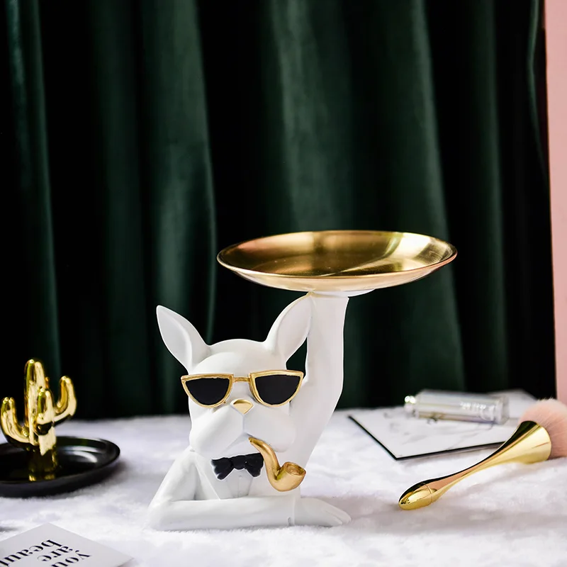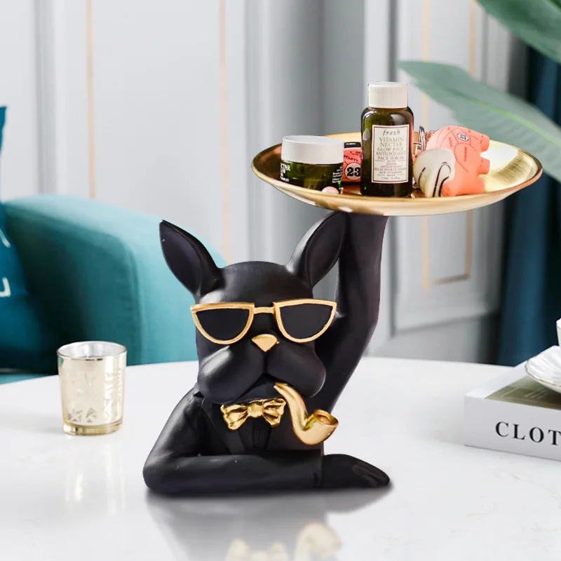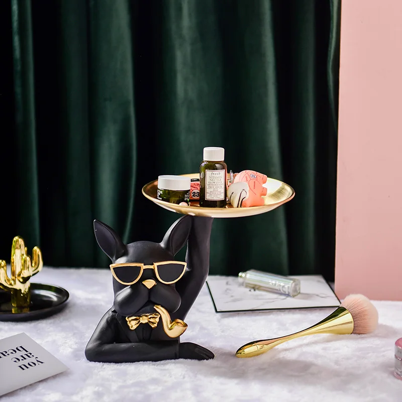 Современные роскошные подносы в скандинавском стиле в виде бульдога, декоративные украшения, домашний декор, аксессуары для украшения гостиной из смолы