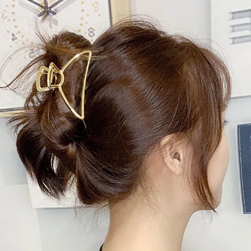 Модные заколки для волос для девочек, металлические геометрические заколки золотого и серебряного цвета, заколка-краб для конского хвоста, аксессуары для волос в Корейском стиле для женщин