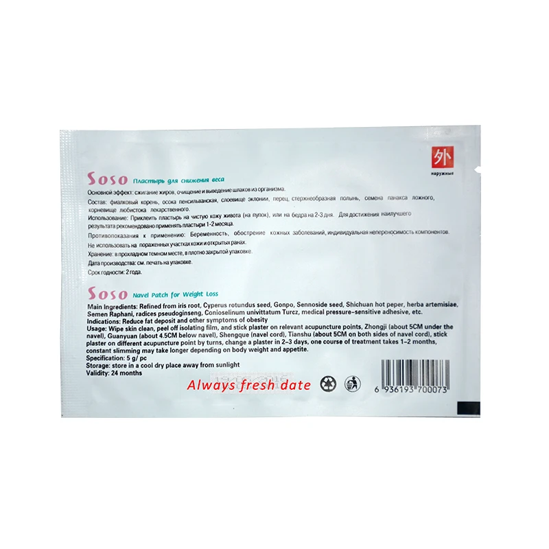 Упаковка включает: 1 лот = 20 штук SoSo патч для похудения