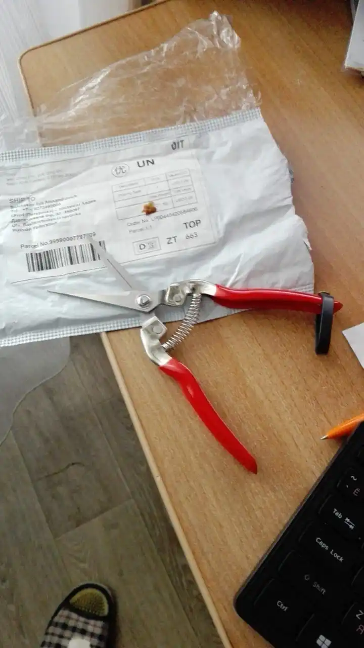 Товар доставили за 20 дней до Сочи. Секатор - ножницы на вид качественные, лезвия заточены с насечками (это очень удобная опция при обрезке твёрдых веточек), пружина не вылетает, прикреплена крепко. Этим секатором очень удобно вырезать повреждённые ягоды из виноградной грозди. Товаром я доволен.
