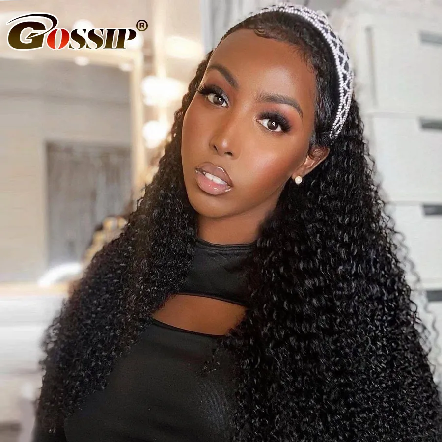 Волнистые парик с головной повязкой парики из натуральных волос бразильский вьющиеся парики из натуральных волос с Африканской структурой, Gossip Волосы Remy парики для чернокожих Для женщин 150% Плотность