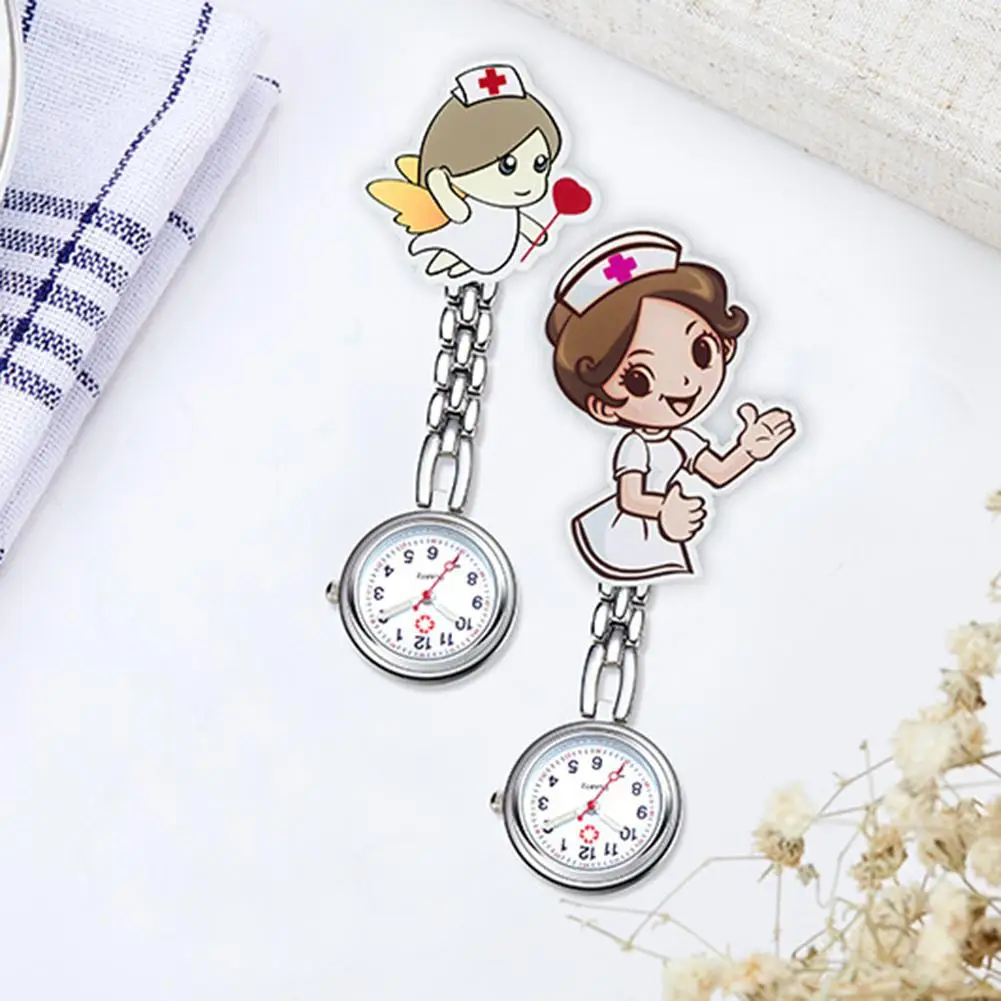 Светящиеся водонепроницаемые часы медсестры цифра аналоговые кварцевые часы медсестры Fob милые Мультяшные медсестры Висячие карманные часы с зажимом