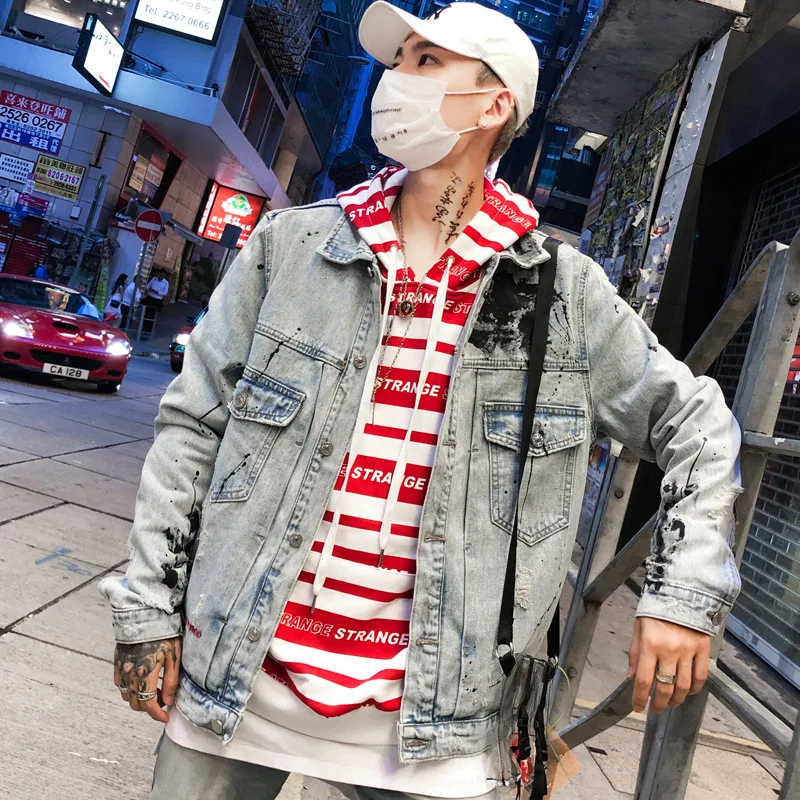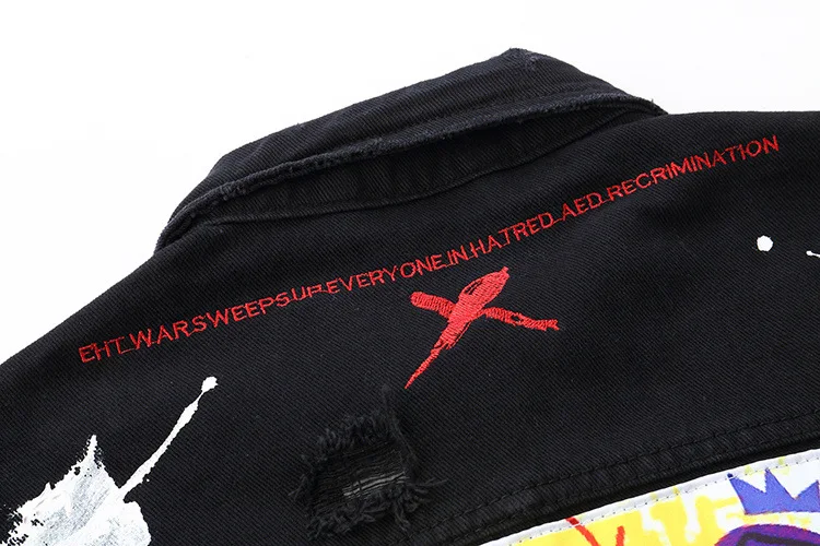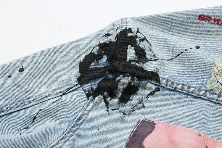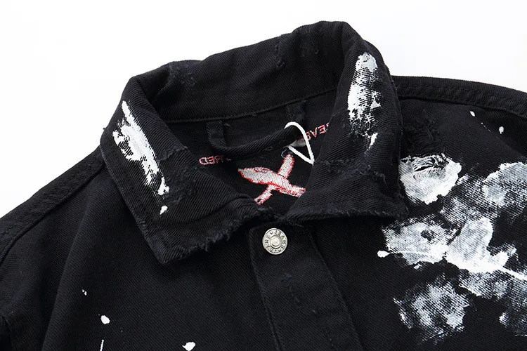 Мужская модная джинсовая куртка SEVEYFAN с масляным рисунком граффити рваная куртка в стиле хип-хоп Уличная одежда пары
