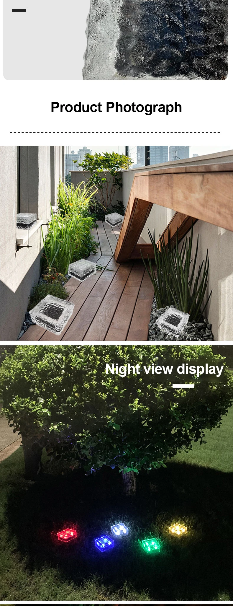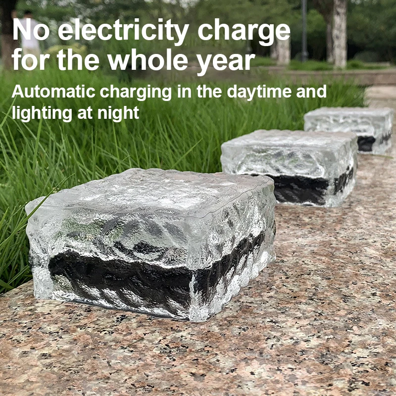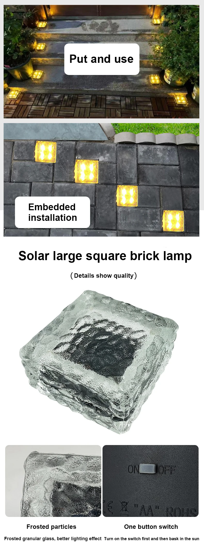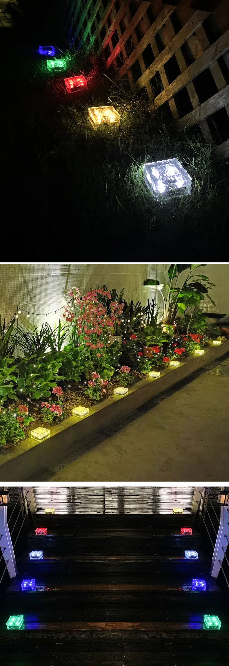 Квадратный светодиодный светильник на солнечной батарее, уличная лампа для дорожек с ледяным кирпичом, освещение для ландшафта, садовая декоративная лампа для газона, для двора, коридора, улицы, лестницы
