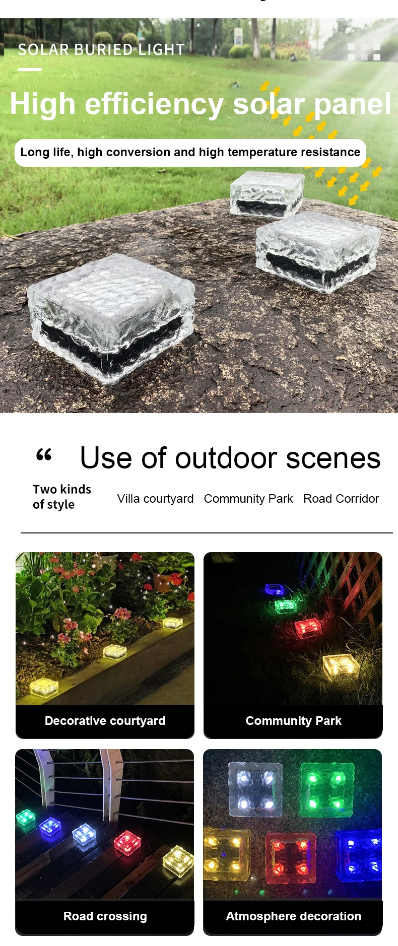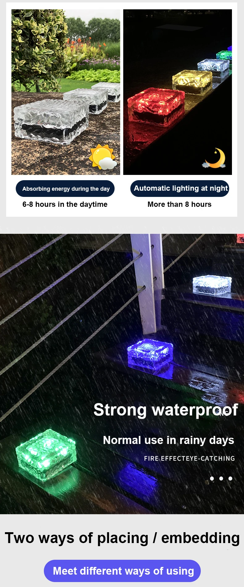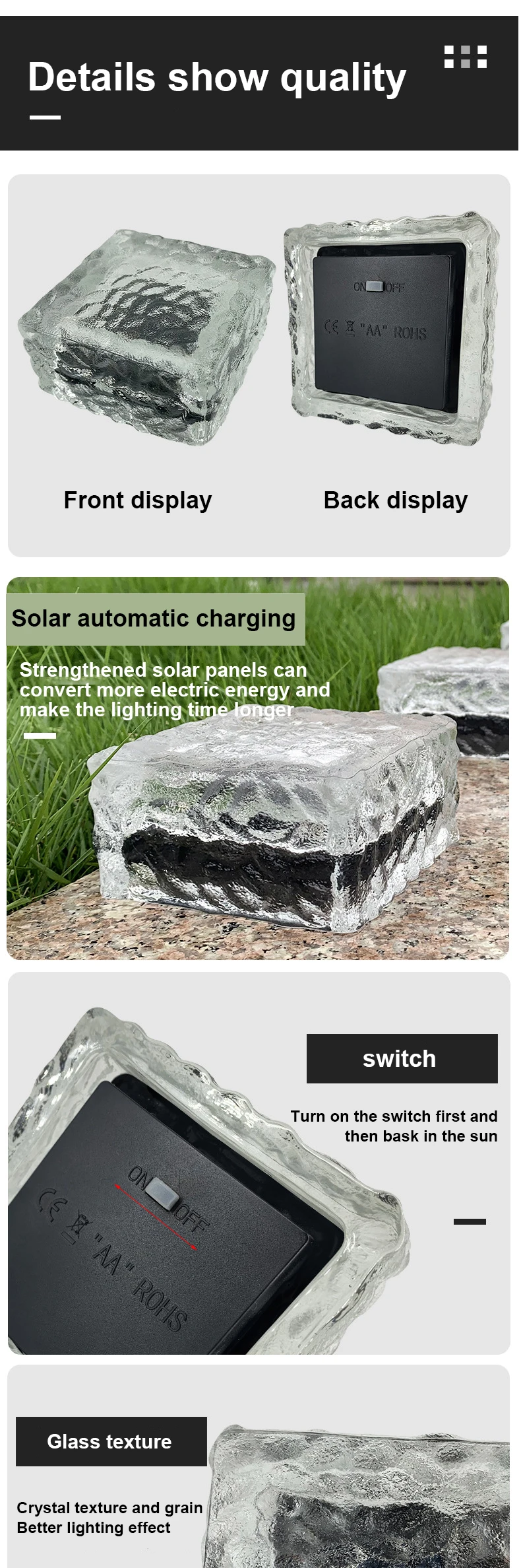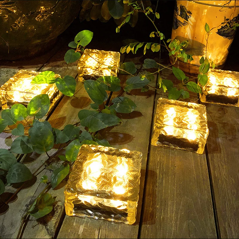 Квадратный светодиодный светильник на солнечной батарее, уличная лампа для дорожек с ледяным кирпичом, освещение для ландшафта, садовая декоративная лампа для газона, для двора, коридора, улицы, лестницы