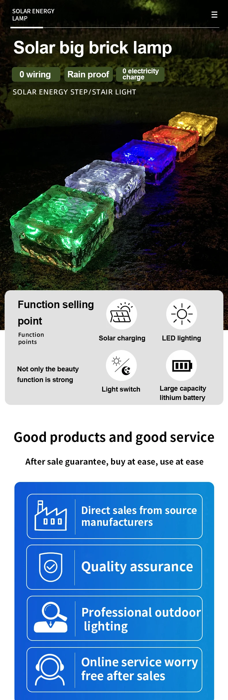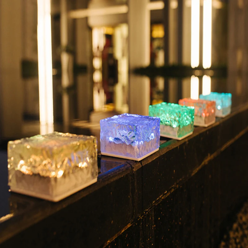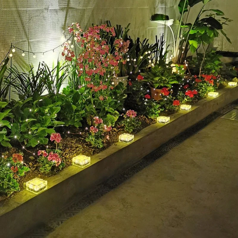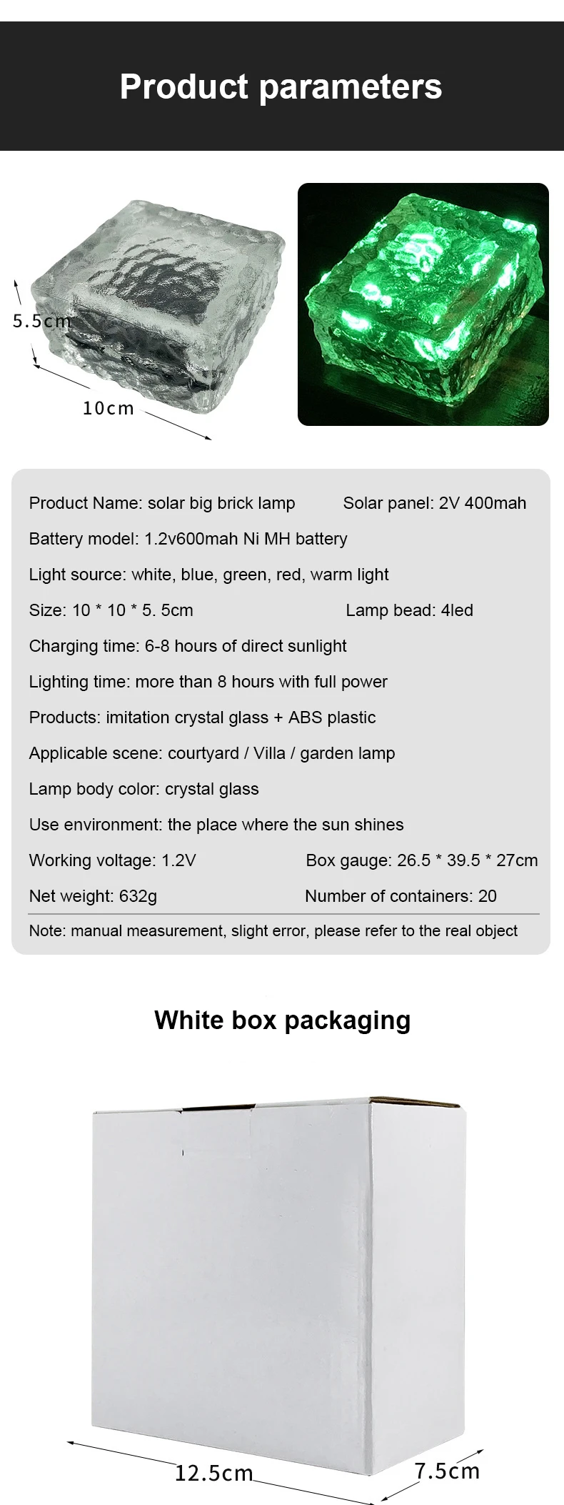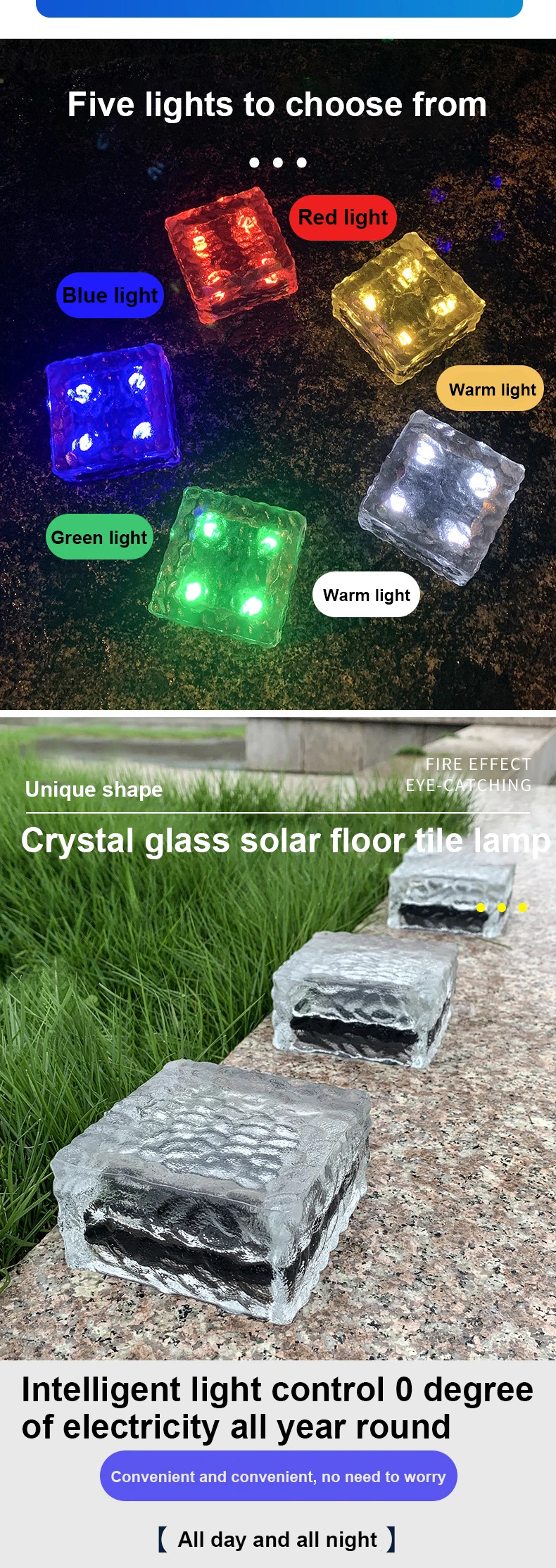 Квадратный светодиодный светильник на солнечной батарее, уличная лампа для дорожек с ледяным кирпичом, освещение для ландшафта, садовая декоративная лампа для газона, для двора, коридора, улицы, лестницы