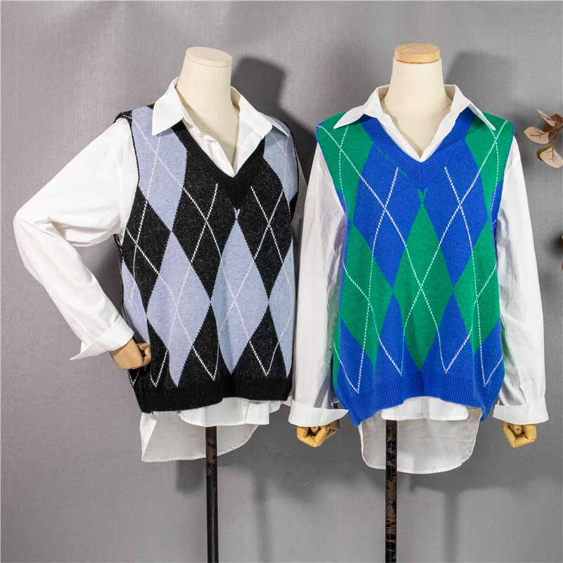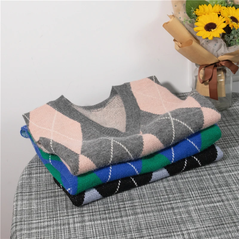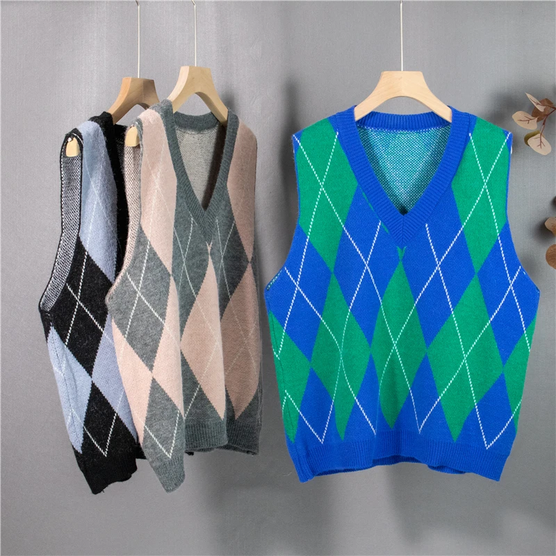 Жилет женский трикотажный в клетку, Осень-зима, 2021