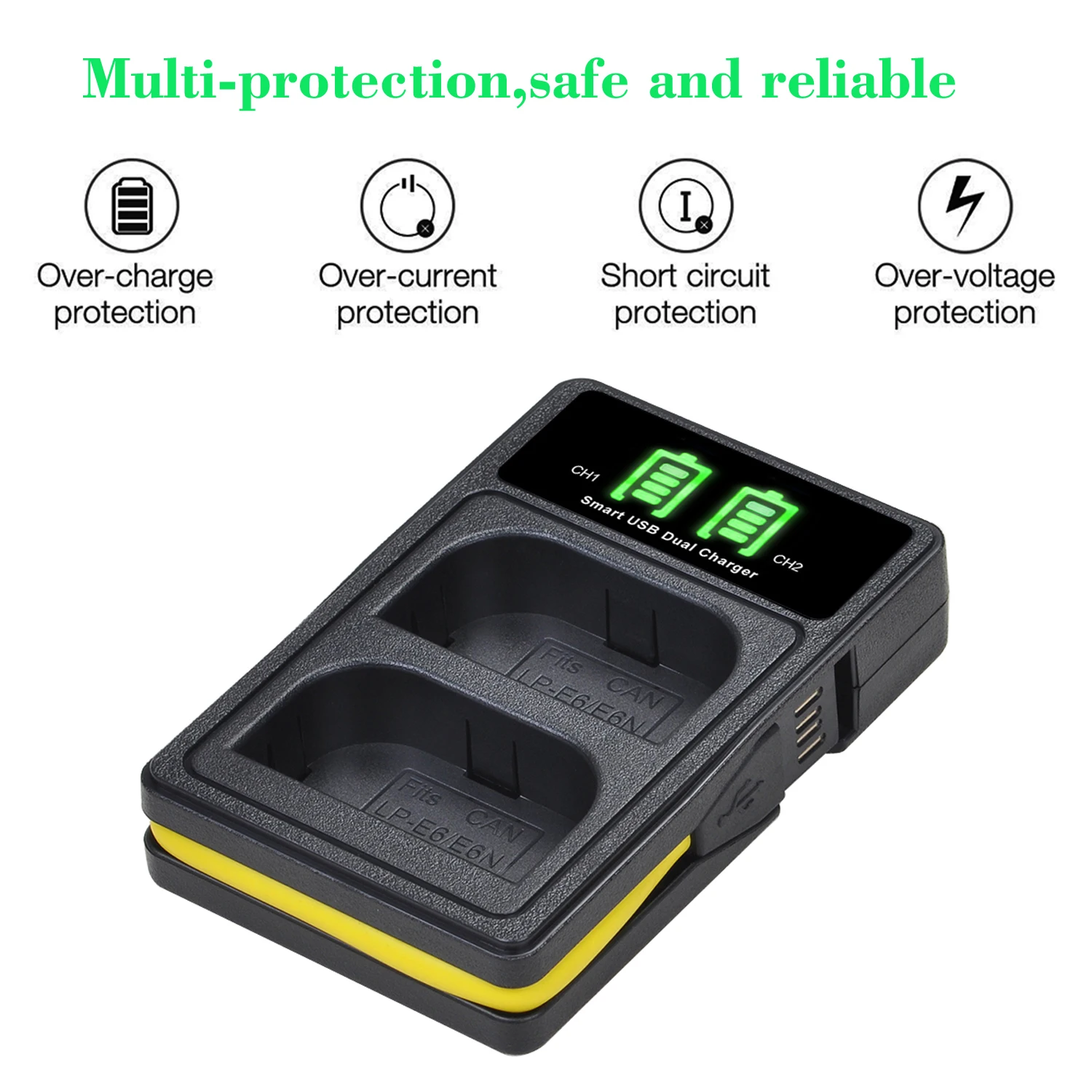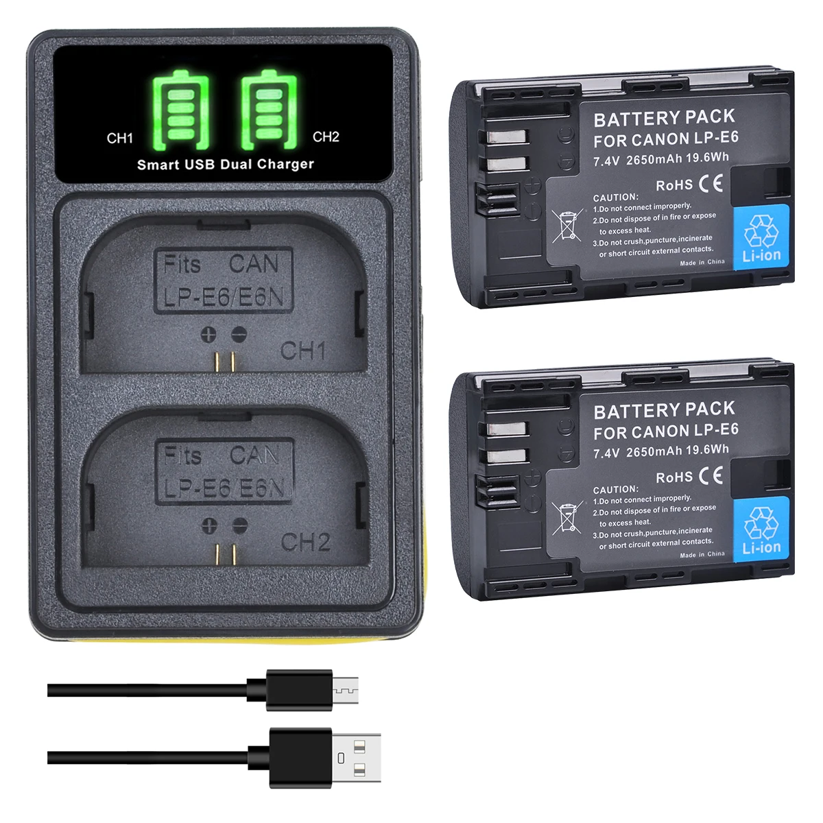 DuraPro 2650 мАч LP-E6 LP-E6N батарея + светодиодный двойной зарядн...