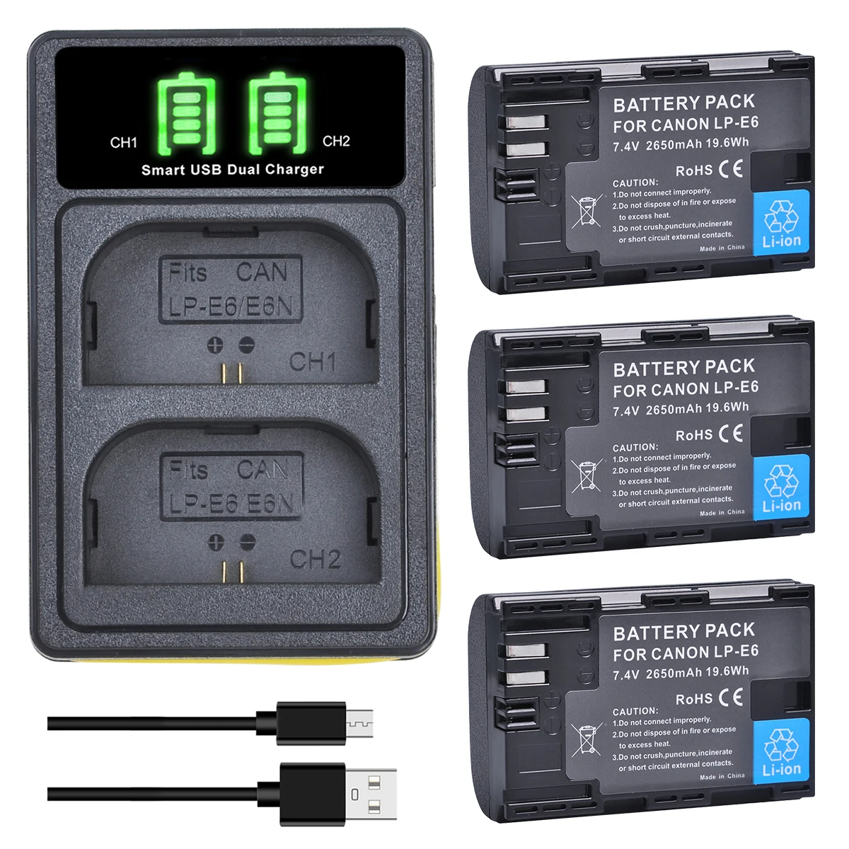 Аккумулятор для камеры LP E6 LPE6, 2650 мА ч, двойное зарядное уст...