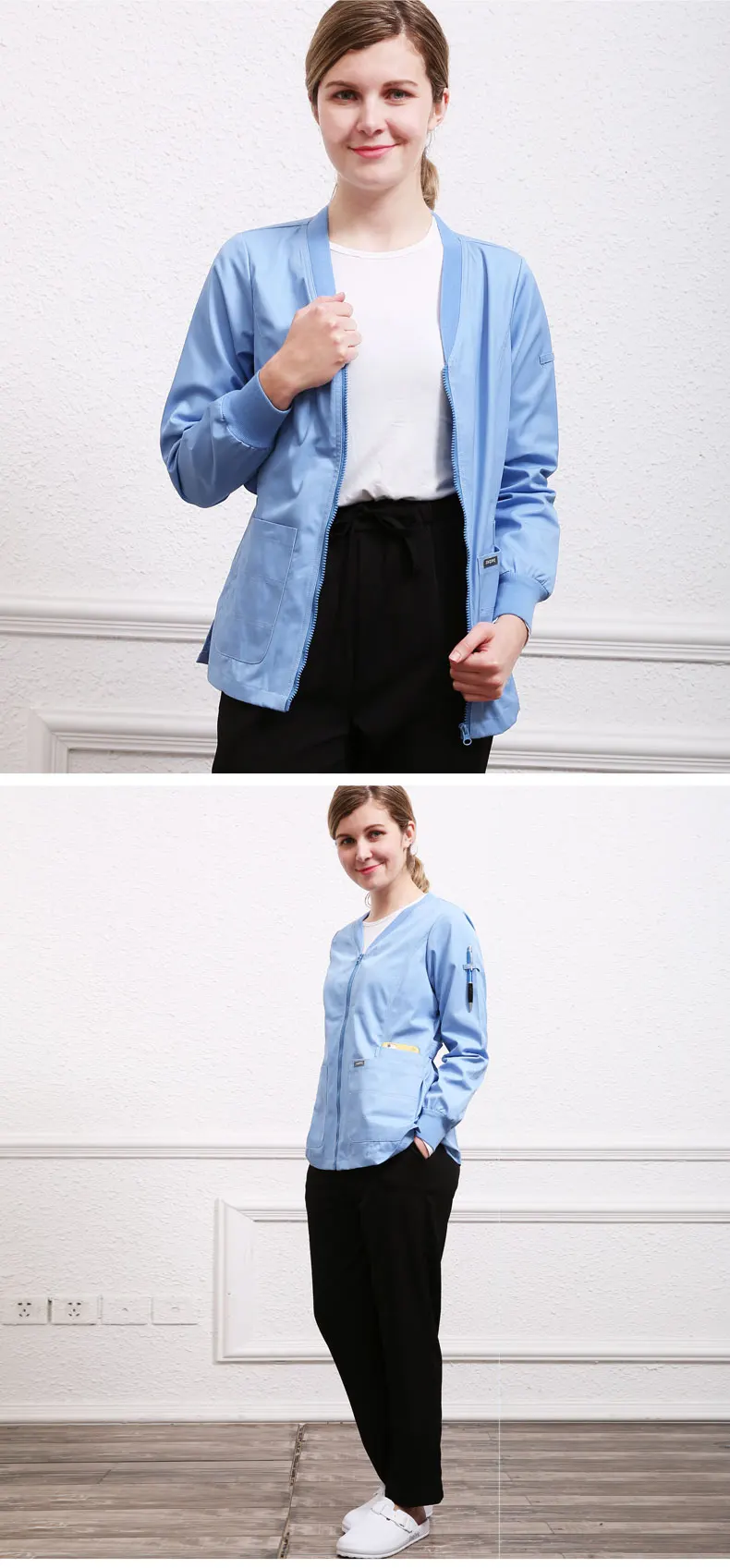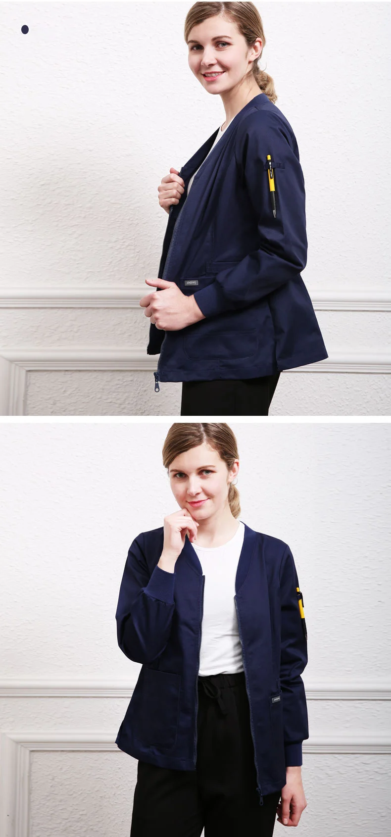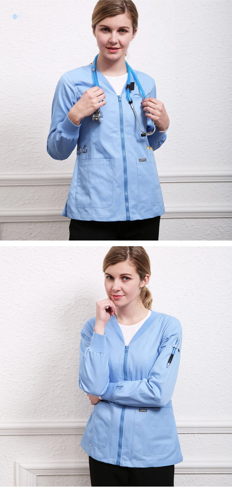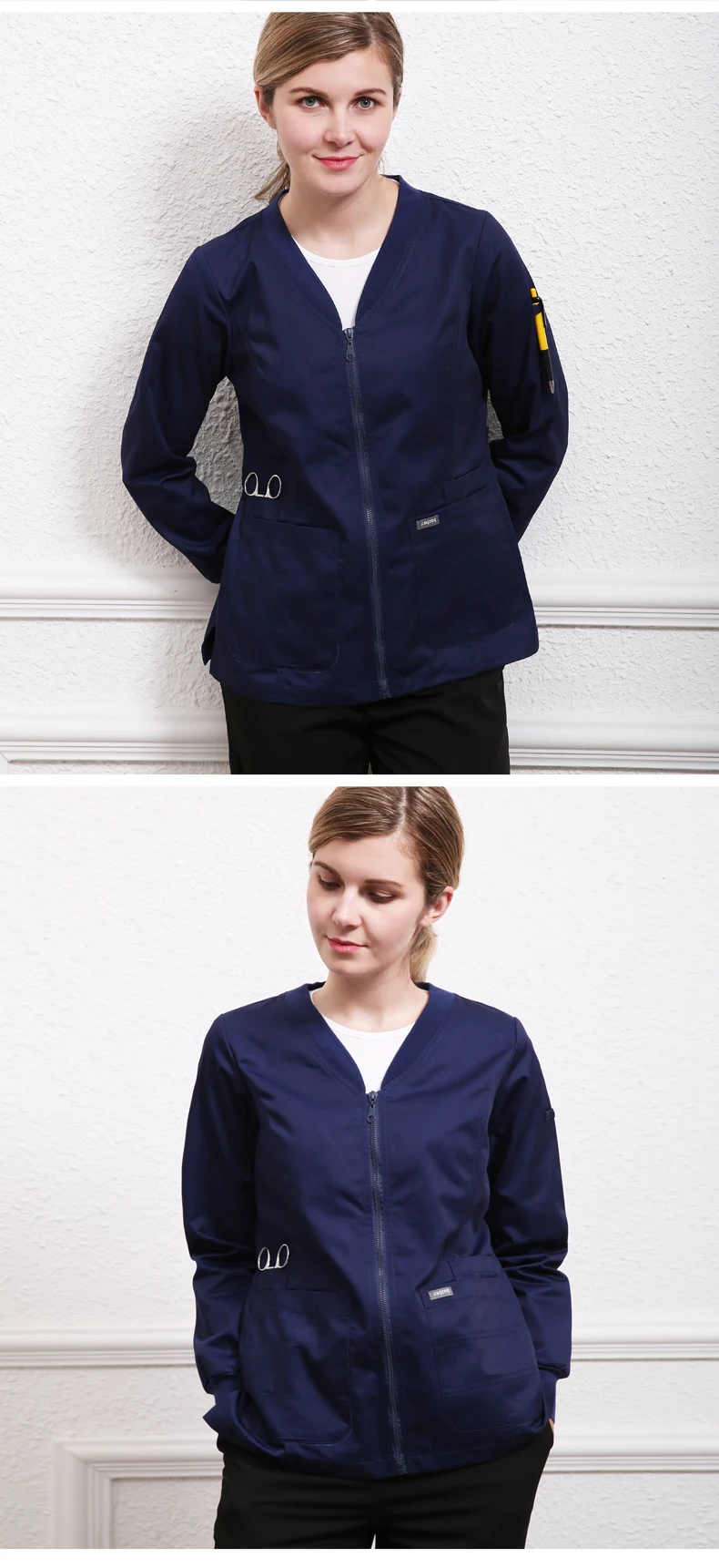 Скраб куртка спецодежда унисекс верхняя одежда медсестры Рабочая Униформа светильник вязаная манжеты молния спереди туника 19JK001