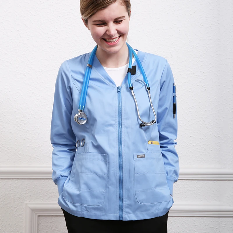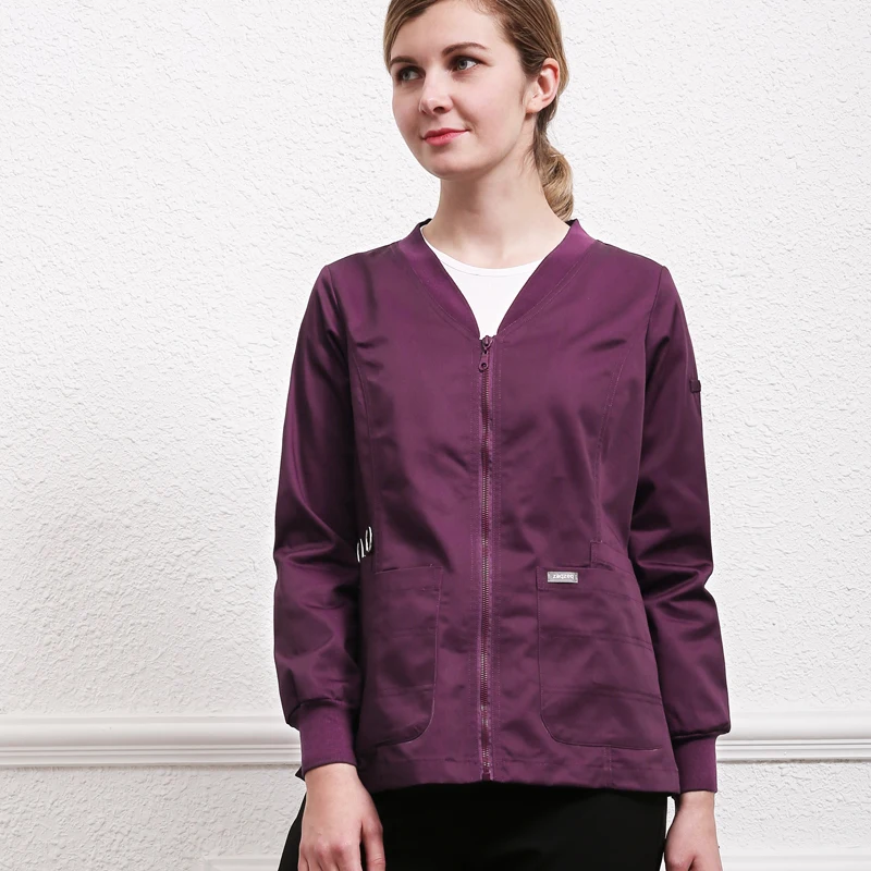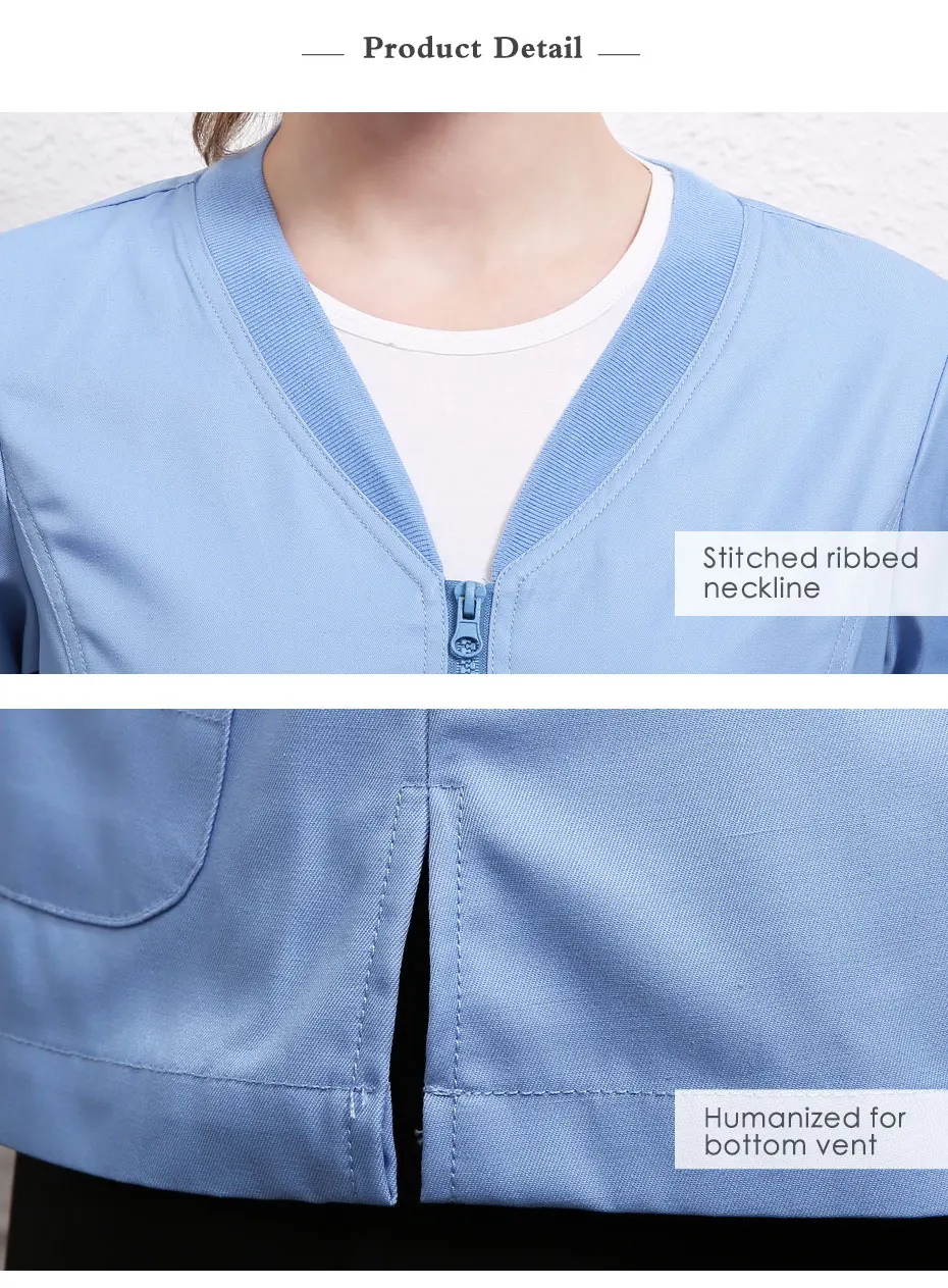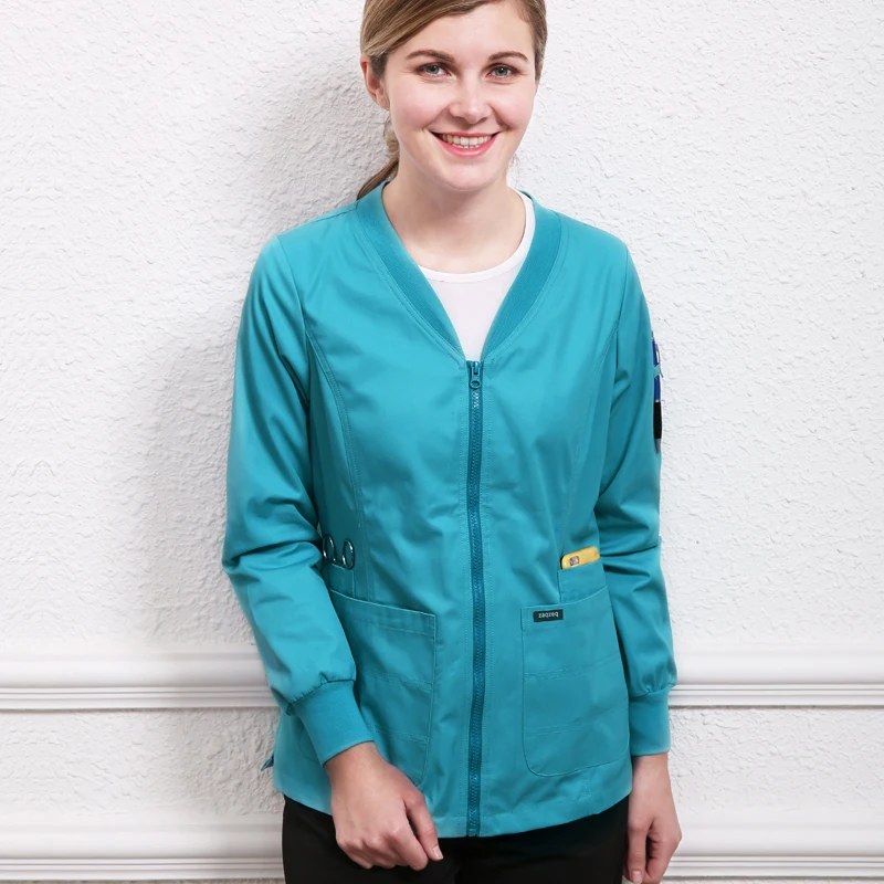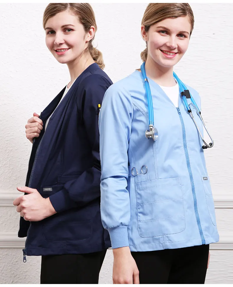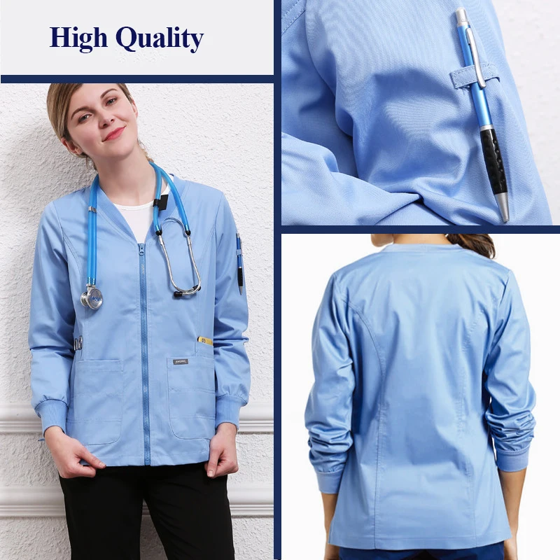 Скраб куртка спецодежда унисекс верхняя одежда медсестры Рабочая Униформа светильник вязаная манжеты молния спереди туника 19JK001