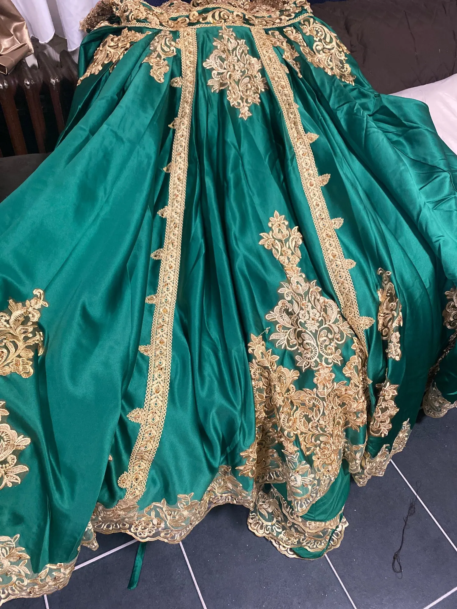 Свадебное платье с вуалью, из двух частей, зеленое, индийское, круж...