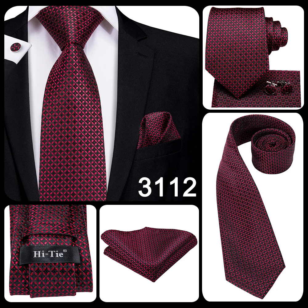 Hi-Tie бордовый Одноцветный Шелковый Свадебный Галстук Пейсли для мужчин новый дизайн мужской галстук Hanky запонки Набор Бизнес Вечеринка Прямая поставка