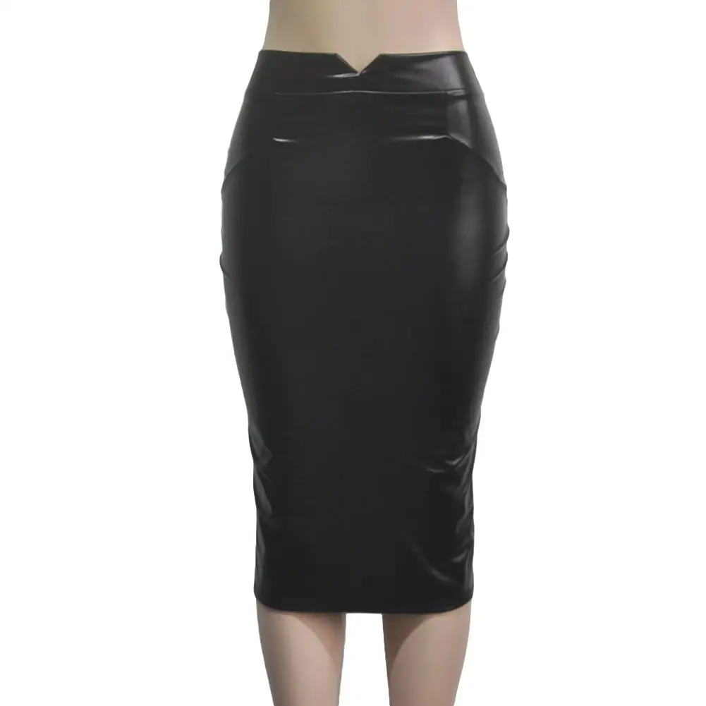 Модные Женские однотонные Цвет искусственная кожа с высокой талией эластичная тонкая облегающая юбка Длина размера плюс юбки