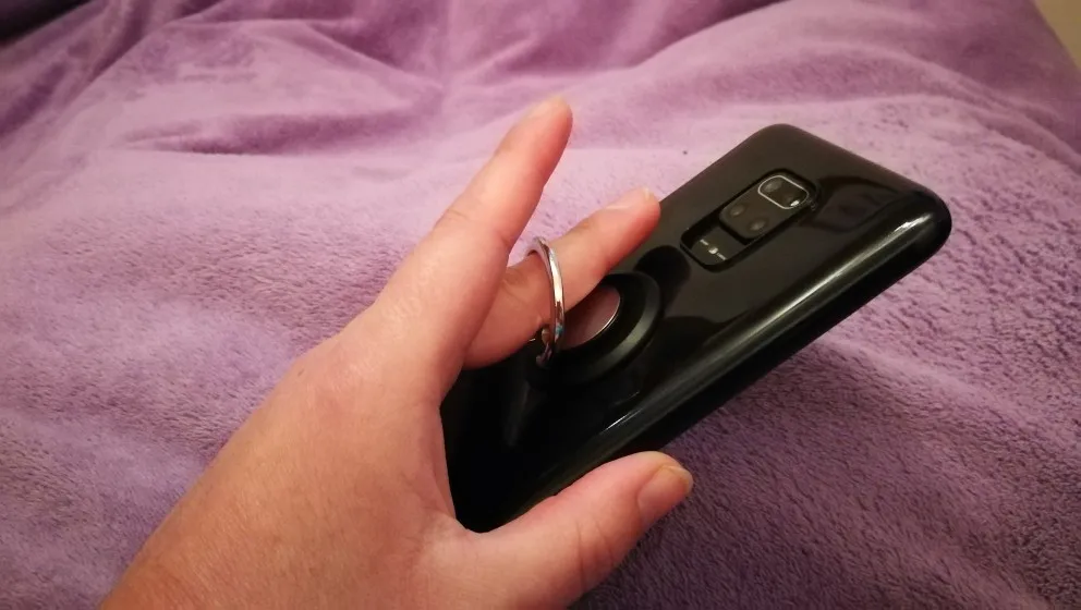 Кольцо красивое, эффектно выглядит, приклеивается намертво. Платформа, которая приклеивается на телефон, выполнена из материала похожей текстуры как чехол, матового и шероховатого, поэтому подходит идеально. Кольцо поднимается легко, вокруг своей оси крутится щелчками, но так видимо задумано для лучшей фиксации положения.