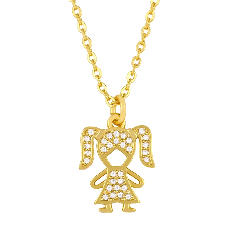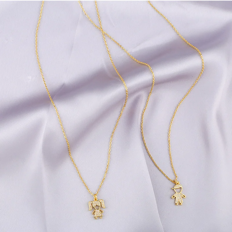 Милый маленький мальчик и девочка Подвеска дружба для женщин Подвеска белый камень ожерелье стерлингового серебра CZ Циркон Простой семья Ювелирные изделия Подарки nkes11