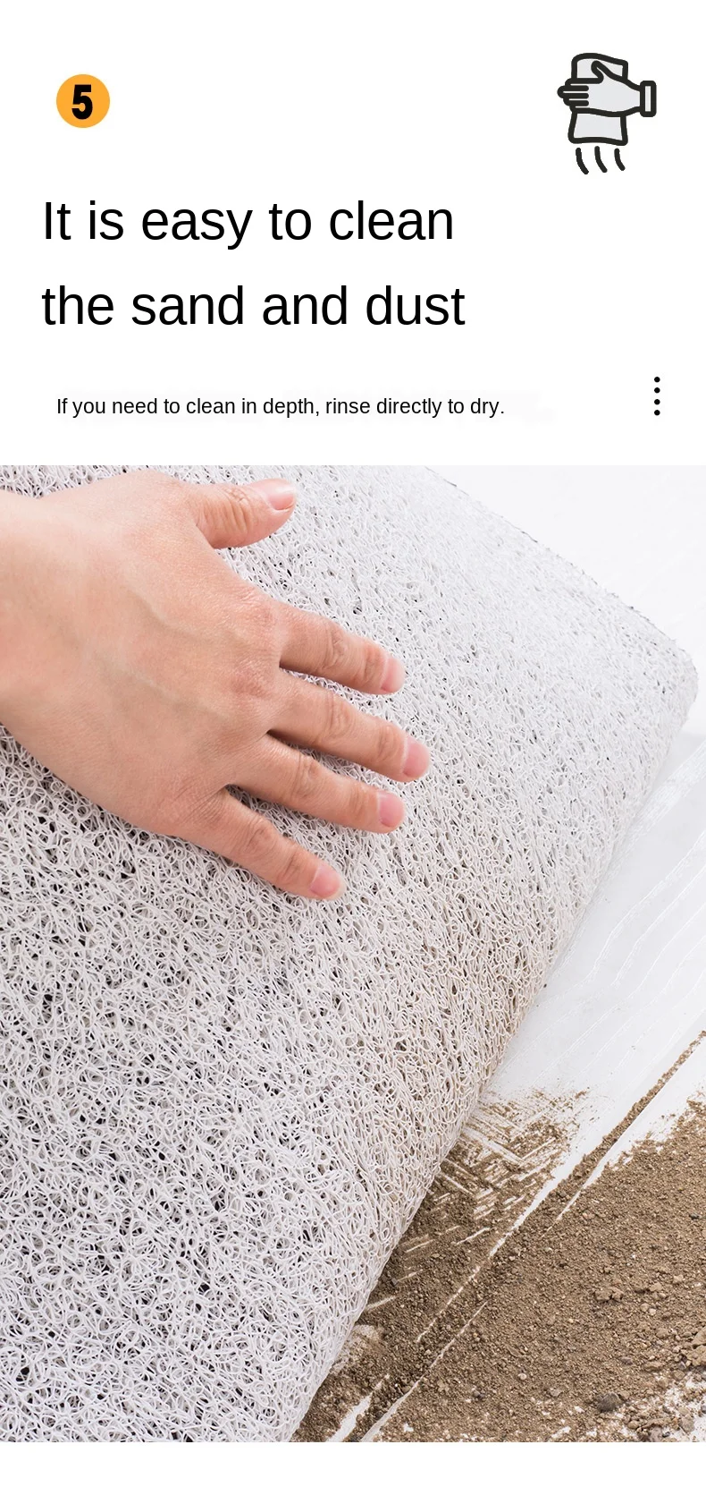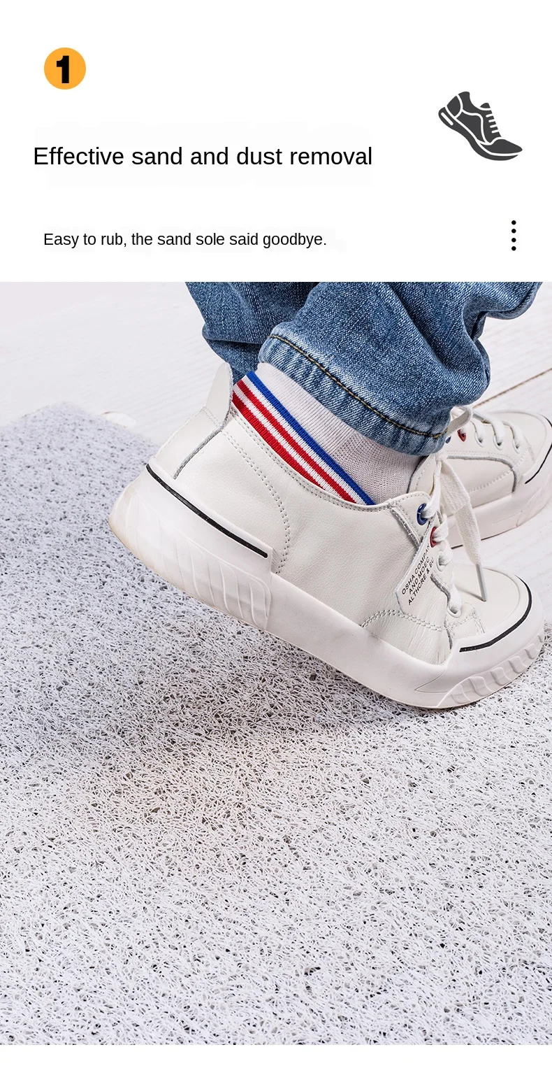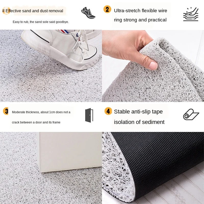 > Коврик с шелковой петлей из ПВХ изготовлен из экологически чистого и безвредного материала.> Толщина коврика составляет около 8 мм, он может полностью лежать на полу и не мешать открытию и закрытию двери.> Его можно свободно вырезать в любую форму и он подходит для внутреннего и наружного входа, прихожей, фойе и т. д.> Нижняя часть коврика изготовлена из нескользящего материала, чтобы предотвратить скольжение коврика и защитить вашу безопасность.> Вышеуказанный материал может впитывать влагу с обуви, делая пол чистым и сухим, а также удаляя пыль, грязь, снег и т. д.> Когда коврик заполнен частицами грязи, вы можете просто очистить его с помощью пылесоса или использовать садовый шланг для краску, затем дайте коврику полностью высохнуть на воздухе перед следующим использованием.> Наш коврик может быть изготовлен по индивидуальному заказу на в соответствии с размером от входа в дверь, пожалуйста, свяжитесь с нами, если вам нужно сделать заказ.