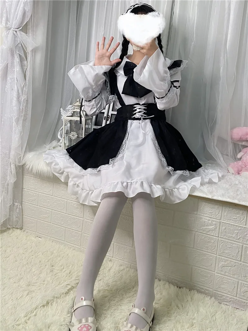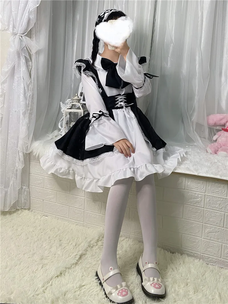 Женский наряд горничной, милые готические платья в стиле Лолиты, аниме фотоаксессуары! Костюм для косплея, фартук, платье, Униформа, костюмы на Хэллоуин