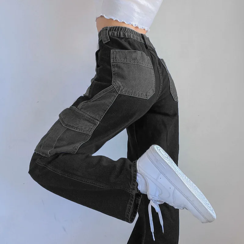 Джинсы женские, широкие, с высокой талией, в готическом стиле, в стиле хип-хоп