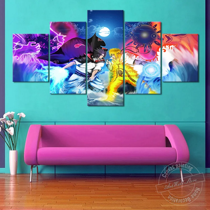 Модульные плакаты, 5 шт., японские аниме-персонажи, холст, HD-печат...